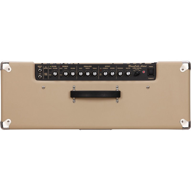 Roland BC-Artist 212 gitarsko pojačalo. With the Blues Cube Artist 212. Guitarists can tap into Roland's acclaimed Tube Logic tone in a dual-speaker amp that's ready for bigger stages. The Artist 212 is equipped with the same primary features as its 1x12. With two custom 12-inch speakers and 85 watts of power for additional clean headroom when you really need to cut through. It also offers reduced size and weight when compared to typical 2x12 amps. Making it the ideal choice for any gigging player who needs the fuller voice and enhanced projection of a dual-speaker combo. Going far beyond modeling. Roland's Tube Logic design philosophy starts with carefully reproducing the inner workings of the revered tweed-era tube amp in every way. From guitar input to speaker output. Versatile clean and crunch channels can be used independently or combined for a complex range of tones. While variable output power modes let you dial in burning. Full-throttle sound at any volume. Road-tested and fine-tuned with feedback from top players. The gig-ready Blues Cube delivers the sweet. Magical tone and satisfying feel that makes a great guitar amp a highly expressive musical instrument.