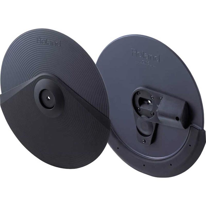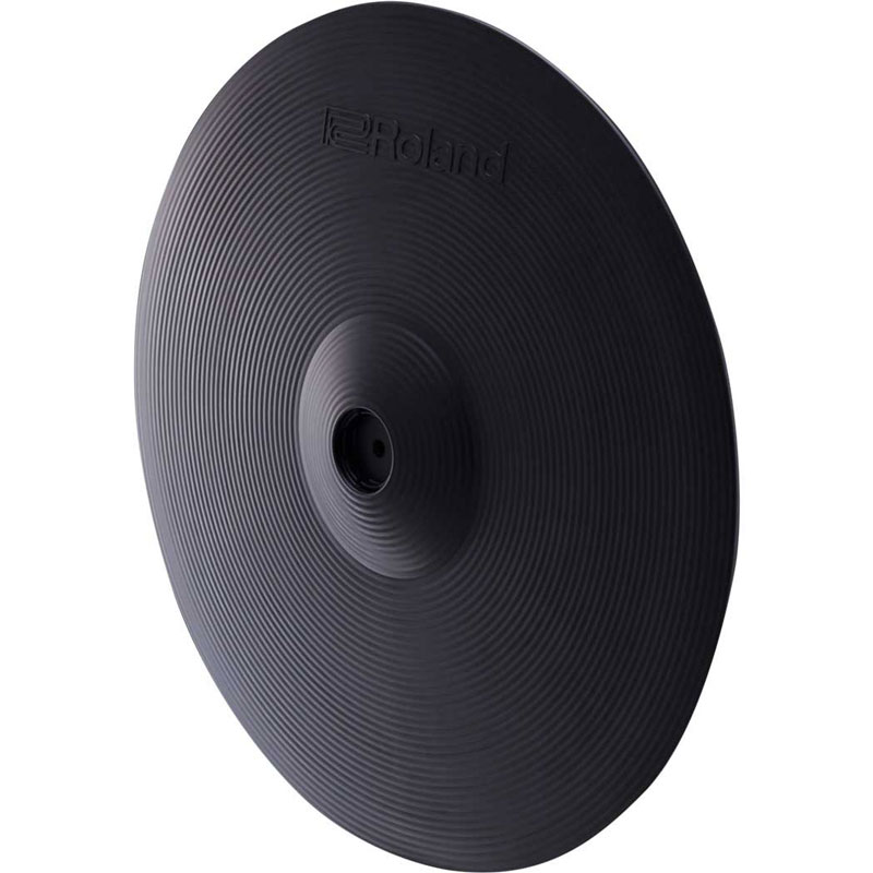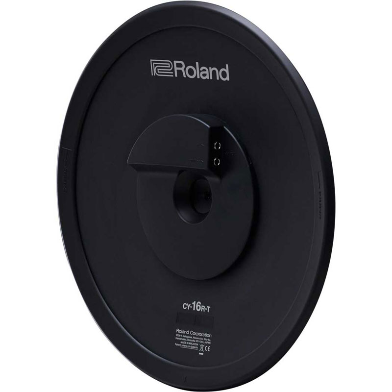 Roland CY-16R-T V-Cymbal Ride. The CY-16R-T V-Cymbal features a 40-percent thinner profile than previous generations. Offering an organic and expressive playing experience with more even response, improved stick feel, and natural acoustic swinging motion. And with its elegant textured design, the CY-16R-T projects an authentic acoustic look on stage. The CY-16R-T’s sensor system can be configured within the TD-27 V-Drums module* for use as a ride cymbal (bow/bell) or crash cymbal (bow/edge). Three-way triggering is supported via two cables with advanced V-Drums modules, providing independent sounds on the edge, bow, and bell. The cymbal can also be choked simply by grabbing the edge–just like a real acoustic cymbal.