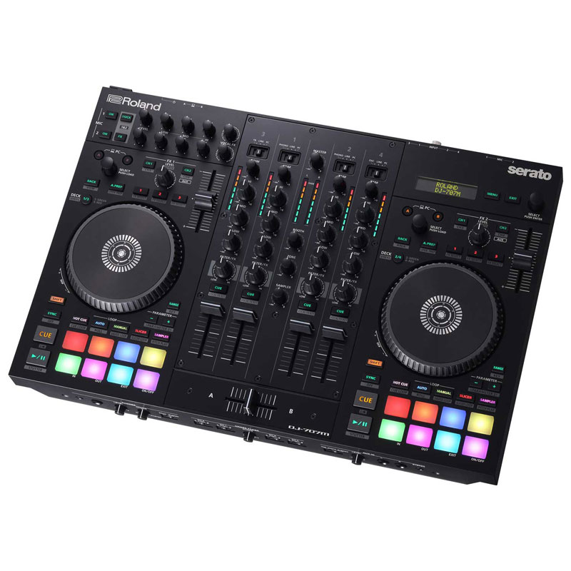 Roland DJ-707M DJ Controller. DJs don’t just play music—they’re also often the MC. Livestream producer, sound tech, and remixer, and sometimes the event organizer too. This hefty workload means they need equipment that supports much more than simply mixing songs together. Say hello to the Roland DJ-707M, an integrated livestreaming sound console, multi-purpose audio interface, loudspeaker management system, and fully fledged performance DJ controller that’s equipped to handle the demanding audio needs of any type of DJ.