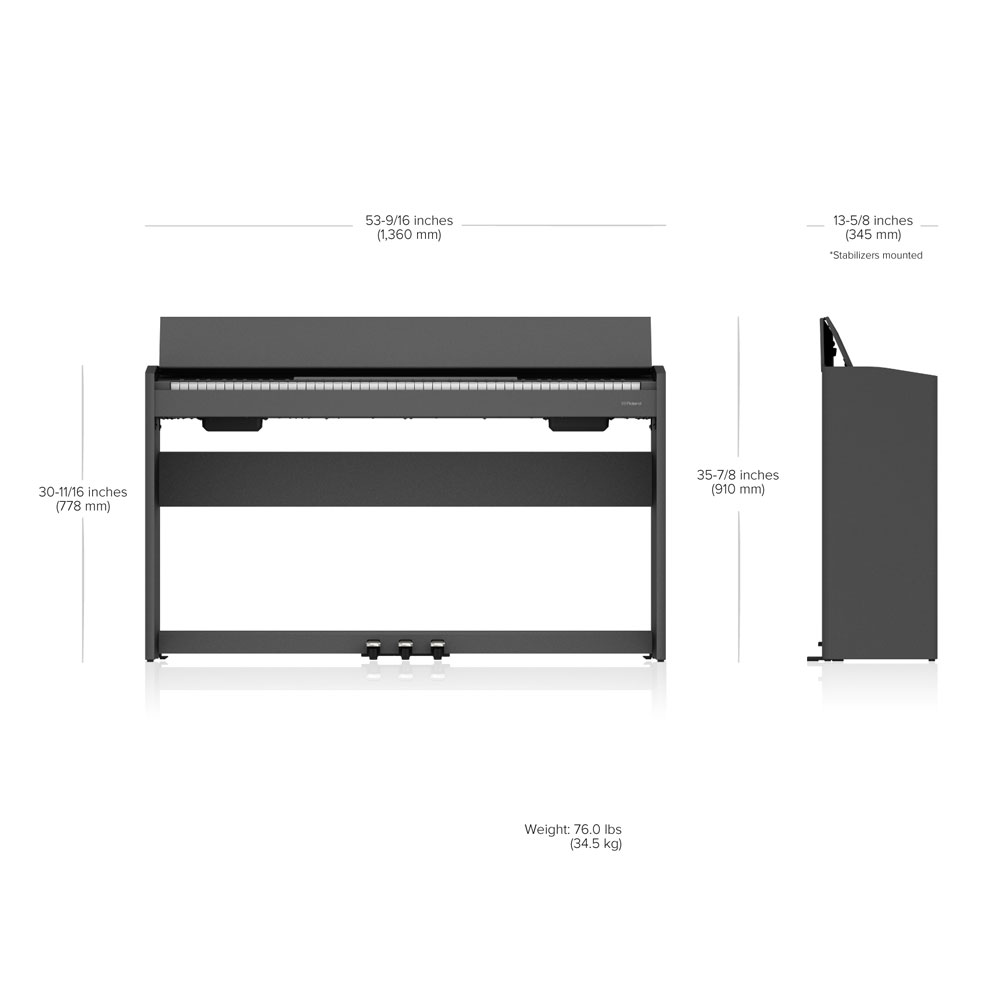 - Roland home pianos are noted for their attractive designs, and the F107 is no exception. With an understated cabinet similar to our F701-winner of the 2021 Red Dot Design Award-this instrument looks great in any room. The efficient footprint won't intrude on your space, and the elegant lid hides the keyboard when not in use. When you're ready to play, the lid becomes a convenient rest for sheet music or a mobile device. And with the smartly organized controls, you can quickly access essential piano functions without distraction.