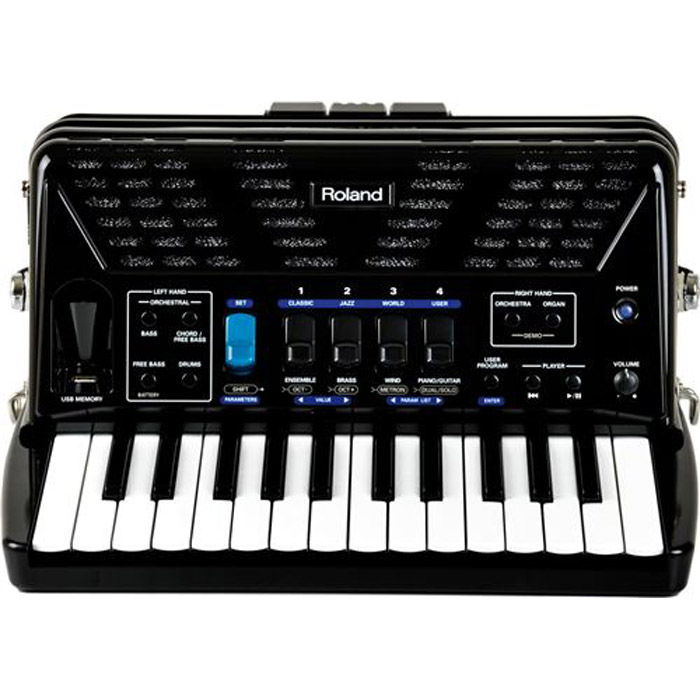 Roland FR-1X-BK V-Harmonika sa zvučnicima i USB-om. Nova FR-1x V-Harmonika, nalik svom prethodniku. Popularanoj FR-1, nudi istu fleksibilnost sviranja ali sa par bitnih izmena - USB povezivanjem i poboljšanim senzorima za osetljivost meha. Sa novom generacijom ugrađenih zvučnika i ekranom većih dimenzija, FR-1x V-Harmonika i FR-1x V-Harmonika dugmetara postavljaju standard na polju harmonika malih dimenzija.