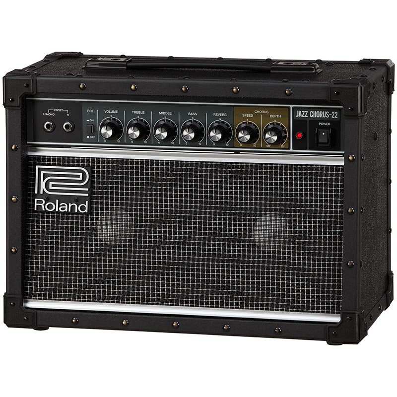 Roland JC-22 Jazz Chorus gitarsko pojačalo. The JC-22 Jazz Chorus delivers Roland’s classic JC clean tone and famous Dimensional Space Chorus effect in a compact amp that’s perfect for playing at home. Offering the essential features of the popular JC-40 in an even more scaled-down size. This versatile stereo amp is also great for intimate performances and recording. A high-quality reverb complements the onboard chorus. There’s also a stereo input on the front panel for plugging in modelers, multi-effects, and stereo stomps. Built to the same standards of sound and durability that the long-running amp series is noted for, the JC-22 makes legendary JC tone more accessible than ever.