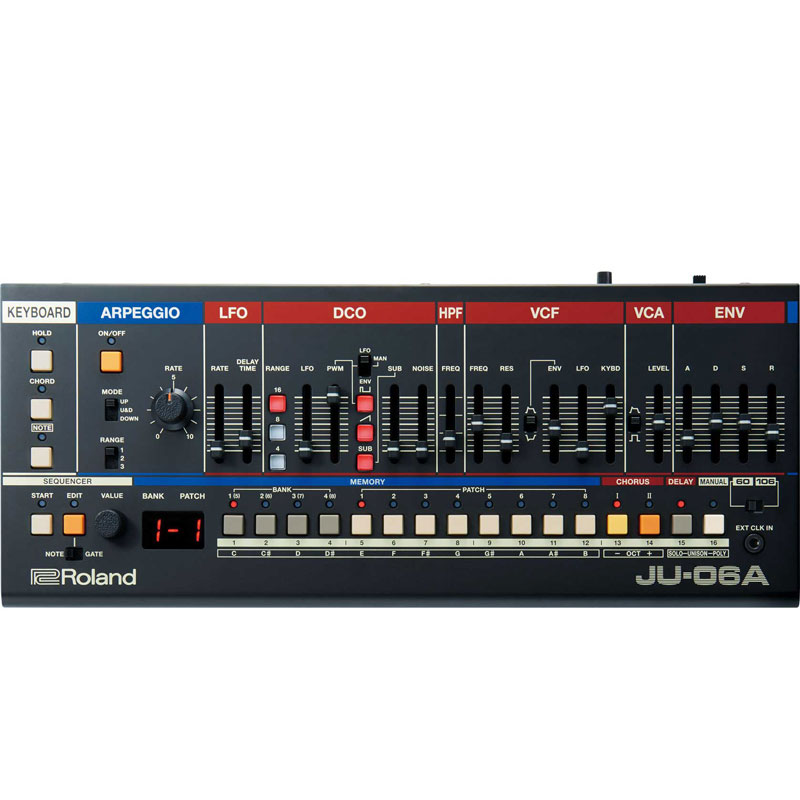 Roland JU-06A Sound Module. Za mnoge, stari Roland JUNO sintisajzeri definišu zvuk 80-ih. Sve popularniji na korišćenom tržištu, mnogi klavijaturisti ili žele jednu, ili duboko žale što su je prodali ranije.