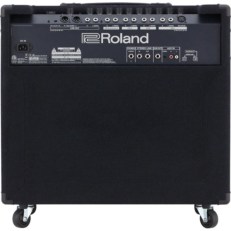 Roland KC-600 pojačalo za klavijaturu. For over two decades, keyboard players everywhere have relied on Roland's KC amps for their powerful high-fidelity sound, onboard mixing features, versatile connectivity, and lasting durability. The latest generation carries on the time-honored KC benchmark of quality while offering new enhancements tuned for the needs of today's working musicians. With a KC amp by your side, you're in complete control of your stage rig. So you'll always sound great and play your best. And that's worth it every time. Packed with many new design features. The KC-600 updates the previous-generation KC-550. Roland's top-selling keyboard amp. The power has been increased to 200 watts. And the two-way speaker system features a newly designed 15-inch custom woofer for improved sound quality. The power section has been completely redesigned for better stability. Enhanced bass reproduction, and reduced weight. With the KC-600's built-in mixer. You're able to connect a variety of stereo keyboards and instruments, plus an XLR vocal mic. And via the Stereo Link function, you can easily chain a second KC-600 for more inputs and true stereo amplification on stage.
