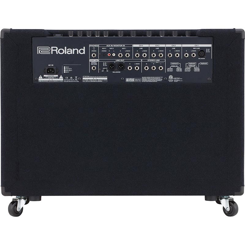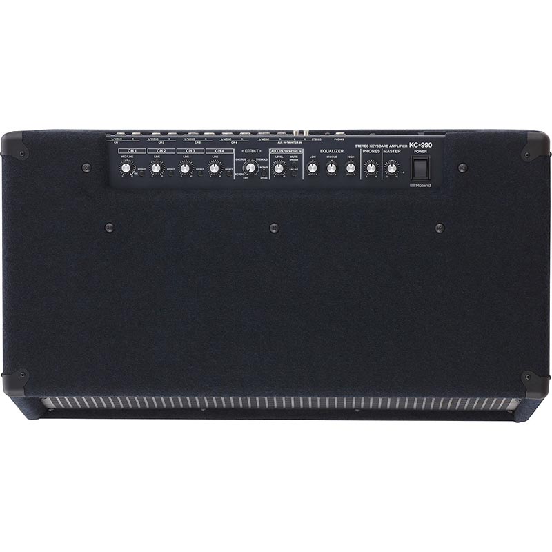 Roland KC-990 pojačalo za klavijaturu. While offering new enhancements tuned for the needs of today's working musicians. With a KC amp by your side. You're in complete control of your stage rig, so you'll always sound great and play your best. And that's worth it every time. The flagship KC-990 is a performance powerhouse filled with high-end features. Offering four onboard DSP effects, four stereo input channels, a stereo aux input, and support for an XLR vocal mic. It's a great all-in-one solution for players with large keyboard setups and small groups performing with electronic instruments and backing tracks. The KC-990 delivers big. Full sound for both stage monitoring and PA use, thanks to its stereo speaker configuration and 320 watts of total power. And with Stereo Link capability. You can seamlessly add a second KC-990 when you need more inputs and broader sound coverage. The KC-990 offers full-range stereo sound reproduction with 320 watts of power (160 watts x 2). Two newly designed 12-inch speakers, and two custom horn tweeters. This allows the KC-990 to accurately reproduce the wide frequency range. Of 88-note stage pianos, organs, and synthesizers, as well as rhythm machines and other electronic instruments.