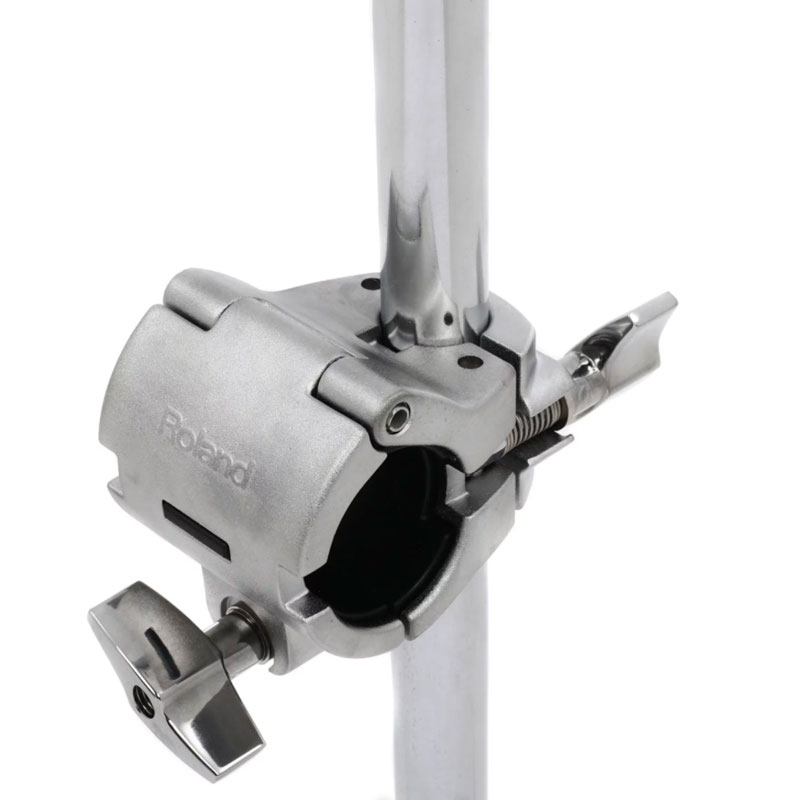 Roland MDY-STG Hatched Cymbal Mount. Give your V-Drums stand the glitz and gravitas of your favorite stage rack when you pair it with the Roland MDY-Stage cymbal mount. This versatile boom stand with integrated rack clamp fits all Roland MDS rack stands (MDS-25, MDS-50KV). IT is compatible with any V-Cymbal pad in your collection. The universal ball tilter gives you full positional freedom of your hi-hats, rides, crashes, and splash. The gripper top/felt assembly secures your V-Cymbals without constricting or causing unwanted triggering. The Roland MDY-Stage comes decked out in a classic chrome finish to recall the look of your favorite drum racks.