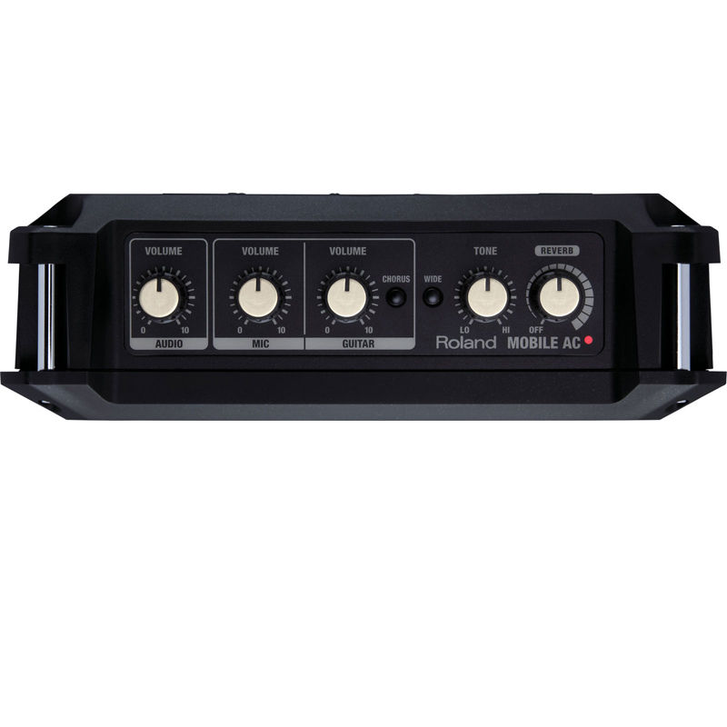 Roland Mobile-AC pojačalo za akustičnu gitaru. Ako ste početnik u svetu akustične gitare i želite dodatnu dimenziju zvuka, kreativnosti i mogućnosti MOBILE AC je savršeno baš za vas. Optimizovano za akustične gitare i putovanja, MOBILE AC ima jak zvuk u malom pakovanju. Koje bi se lako moglo strpati u ranac. Može se koristiti čak do 15 sati sa baterijama pa ga možete nositi bilo gde. Jednostavno ukjlučite akustičnu gitaru, pojačate zvuk i uživate u čistom i iznenađujuće jakom stereo zvuku. Moguće je dodati duboki stereo horus ili bogati reverb efekat i priključiti i player i mikrofon za kompletnu zabavu. Svirajte gitaru i pevajte uz pratnju i uživajte u svemu tome na bilo kojem mestu pomoću MOBILE AC. Može se koristiti i kao odlični personalni monitor za binu jer ima zvuk koji je mnogo jači od onog što se očekuje od nečeg tako malog.