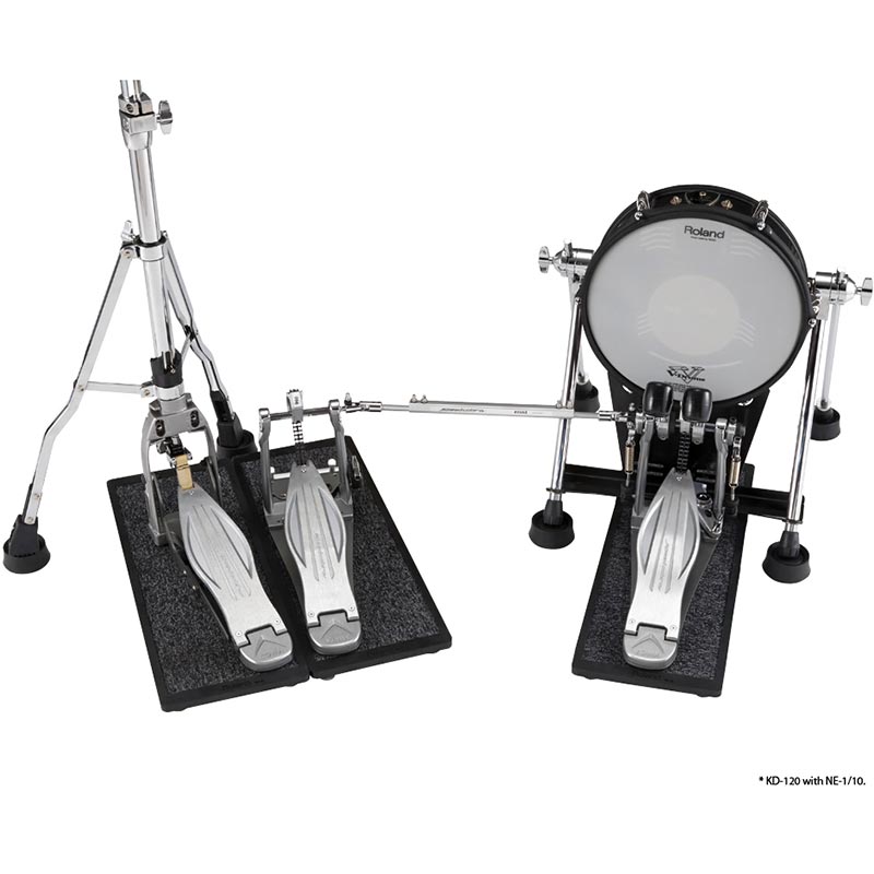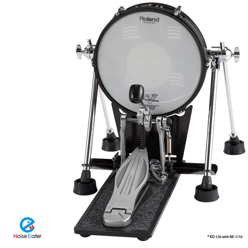 Roland NE-1 Noise Eater. Jedna od mnogo prednosti virtualnih bubnjeva i njihovih mrežastih plastika je da su ekstremno tihi pri korišćenju. Bez pojačanja i mogu se koristiti sa slušalicama za vežbu ili snimanje u situacijama kad je nemoguće koristiti akustične bubnjeve. Međutim fizički udarac kick ili hi-hat pedale može uzrokovati vibracije. One se mogu preneti na prostoriju koja se nalazi ispod. Rolandova najnovija Noise Eater tehnologija pomaže u eliminisanju takvih problema. Tako da bubnjari koji koriste V-Drums setove mogu svirati bez straha da će smetati porodici ili komšijama u susednim stanovima. Na osnovu testova koje je Roland sproveo izolacione karakteristike Noise Eater proizvoda smanjuje prenos vibracija u donje prostorije do 75% u odnosu na pedale koje se koriste bez njih. Sto je velika razlika koja omogućuje da se slobodnije koriste u situacijama kada bi buka mogla biti problem. NE-1 Noise Eater je mala izolaciona podloga koja se koristi po potrebi uz NE-10 Noise Eater. Poseduje jedinstvene gumene dampere koji omogućuju maksimalnu izolaciju zvuka u veoma malim dimenzijama. Kad se koriste Roland KD-140/KD-120 V-Kick ili hi-hat.