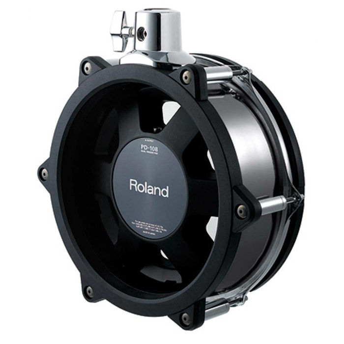 Roland PD-108 BC V-pad. The PD-108 10-inch mesh head V-Pad includes a new rim sensor for improved dynamics and rim-shot depth. The pad features an exchangeable black-chrome color shell wrap and accommodates dual mounting for setup versatility.
