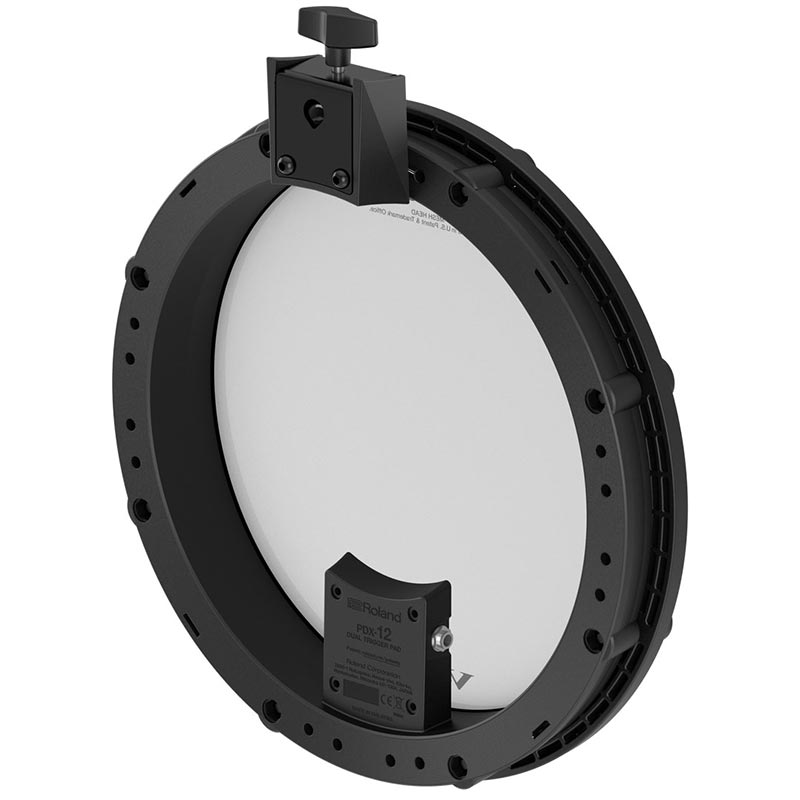 Roland PDX-12 Snare V-Pad. The 12-inch PDX-12 pad for snare/tom features Roland’s legendary 2-ply mesh head. For solid resistance, along with tension-adjustable operation for authentic and satisfying rebound. The height of the snare hoop is much closer to that of an acoustic snare so you can hit an open rim shot with a natural stick angle. High quality materials and newly designed hoop rubber offer the authentic feel akin to hitting an acoustic drum. While independent sensors assign different sounds to the head and rim respectively. If you’re serious about drumming, the PDX-12 lets your technique shine through, without compromise.