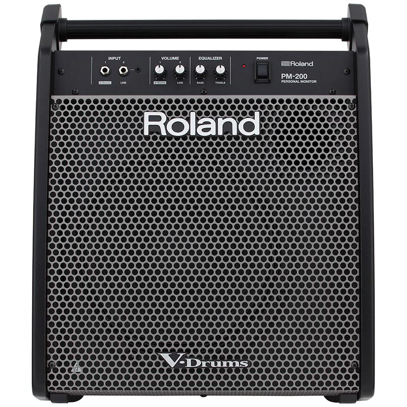 Roland PM-200 Personal Monitor for V-Drums. Delivering rich, dynamic sound in a streamlined package, the PM-200 is the ultimate monitoring solution for Roland’s V-Drums. Packing 180 watts of power, the PM-200 features a custom full-range speaker system and rugged cabinet specially optimized for reproducing the famously expressive V-Drums sound and response. And with integrated mixing and direct output capabilities. It’s easy to interface with other devices at home or on stage. The PM-200 is the perfect complement to any V-Drums set. The custom 12-inch speaker and horn tweeter project big, full-range sound, and 180 watts of power provides ample headroom for both home playing and stage use. The front face is angled for optimal sound monitoring while seated at the V-Drums. And a full-width bar handle on top offers a convenient way to carry the monitor and adjust its floor position.