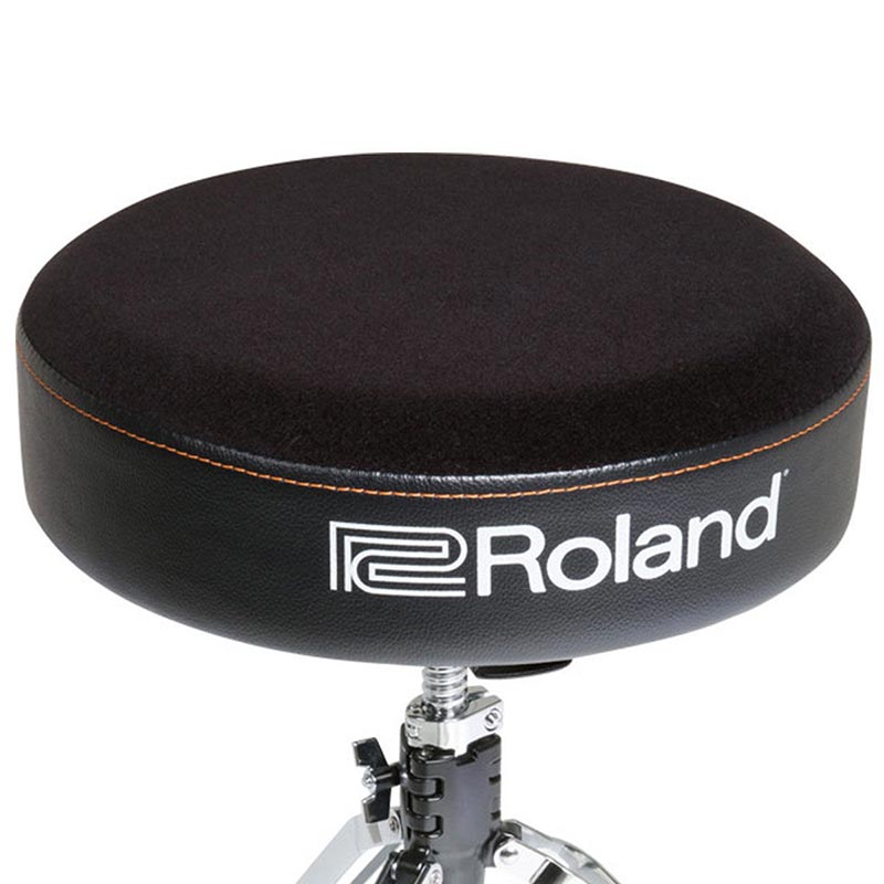 Roland RDT-RV round drum throne. Designed for the professional, the Roland RDT-R drum throne delivers maximum comfort without loss of support. Our proprietary blend of foam provides a forgiving, cushioning core that relieves typical pressure points, and the oversized seat features a breathable velour top that reduces heat and keeps you cool. The sturdy, double-braced chrome base and heavy-duty steel bracket provide easy height adjustment and lasting durability. Built to perform in the most demanding applications, you’ll find comfort and stability with the RDT-R drum throne.
