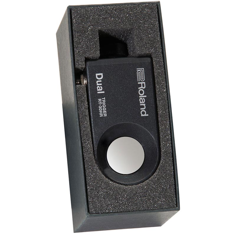 Roland RT-30HR dual trigger modul. With exceptional trigger sensitivity, ultra-quick installation, and compatibility with the latest drum hardware. The streamlined RT-30 series sets a new standard for anyone wanting to explore hybrid drumming. Ideal for use on snare drums. The RT-30HR supports independent head and rim triggering for playing two different sounds from the same drum. The RT-30HR also incorporates a newly developed self-guided mount that automatically sets the sensor in the optimum position against the drumhead, with no fussy mechanical adjustment needed after mounting.