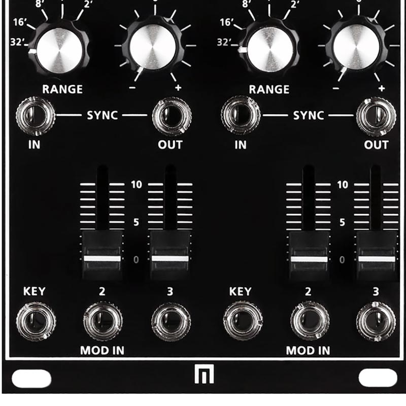 - Controllers: PULSE WIDTH slider, PULSE WIDTH MODULATION slider, MODULATION IN 2 slider, MODULATION IN 3 slider, SYNC switch, RANGE knob PITCH knob