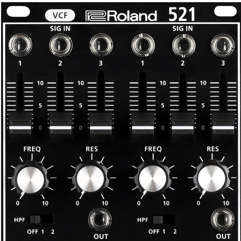 Roland SYS-521 Modular VCF. Based on the classic SYSTEM-100M modular synthesizer. SYSTEM-500 is a fully analog recreation of one of the most revered electronic instruments of all time. Newly designed in Eurorack format. SYSTEM-500 delivers the classic character and functionality of the original with the advantages of a modern instrument. The SYSTEM-500 is made to exacting standards with top-quality components and solid controls, with a collaborative production process between Portland, USA and Hamamatsu, Japan. Turning the fantasy of finally owning this legendary instrument into reality. The SYSTEM-500 consists of Eurorack format modules that you can mix and match in any combination to create the ultimate Roland modular synthesizer. Each module is completely analog and has been designed for maximum compatibility with the world of contemporary synthesizer and effects modules. The SYSTEM-500 is a compact, powerful system that opens up vast possibilities for sound design and musical exploration.