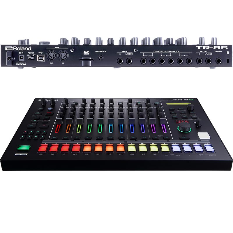 Roland TR-8s Rhythm Performer. Born of the most famous and influential drum machines ever made. TR-8S combines the best of its Roland heritage with modern production techniques and professional sound design. The result? A forward-thinking, performance-tuned instrument unlike any other. Build your dream kit from the most iconic drum sounds of all time, plus the finest selection of samples from our vast library—or import your own custom samples. Tap, tune, and tweak with hands-on controls and production tools that make your patterns move and groove. And why keep this kind of percussive power confined to the studio? The TR-8S was literally made to play live. The TR-8S comes loaded with the largest, most authentic collection of TR drum machines available. The powerful new processor gives our next-generation ACB models a whole new level of detail and nuance, giving you that classic Roland boom, snap, and sizzle. And now you can incorporate preset and custom samples, creating unique hybrid and layered kits, and enhance them with specialized effects that inject professional sound design into the TR formula.