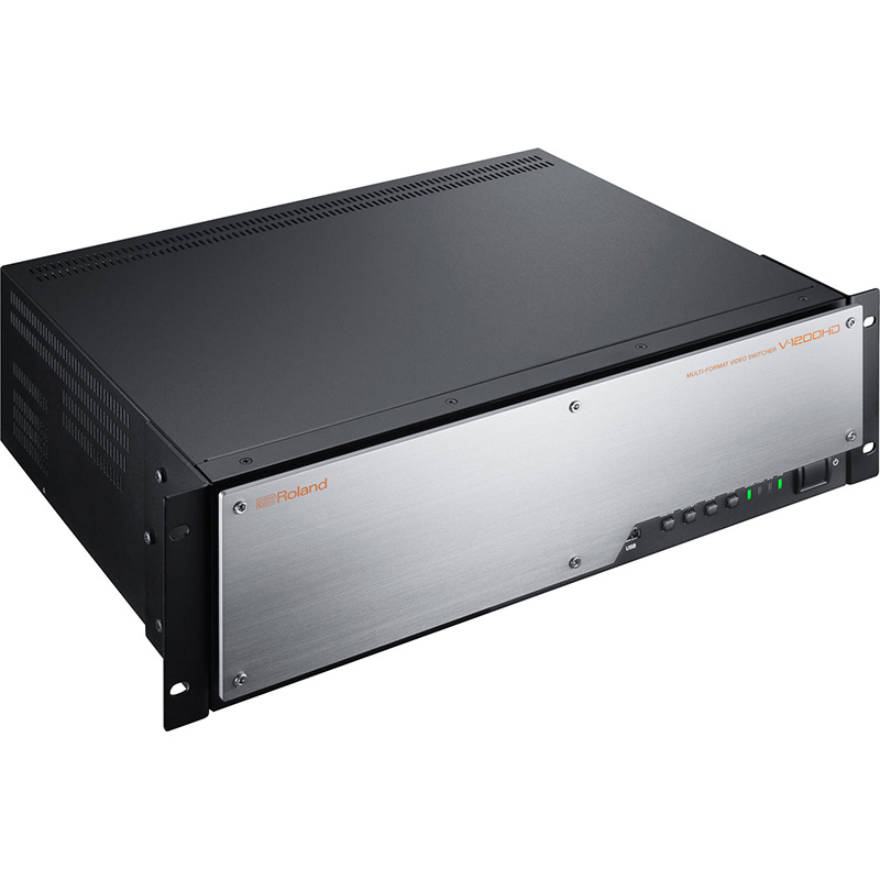 Roland V-1200HD Hybrid Engine 2 M/E Switcher and Processor. Roland V-1200HD Multi-Format Video Switcher is a 2 M/E switcher featuring a new 4:2:2 / 4:4:4 Hybrid Engine that combines the features of a production switcher with the power of a presentation switcher. Multiple M/E configurations can be selected from 1 M/E, 1.5 M/E and 2 M/E to meet the needs of your production. Inputs include 10 3G/HD-SDI and 4 HDMI with 6 3G/HD-SDI Outputs and 2 HDMI outputs. Scalers on HDMI inputs 3 & 4 and HDMI outputs support SD, HD and VESA resolutions. Switch using the V-1200HDR Control Surface or free downloadable Remote Control Software (RCS). The video inputs and the powerful built-in 16-channel audio mixer can be expanded with XI-Series video and audio expansion cards. An intuitive user interface with assignable cross-points and on screen names ensures maximum flexibility for and live production or broadcast. A comprehensive and flexible multi-format video switcher giving you complete control of video sources, key layers and mixing engine configurations. The V-1200HD introduces a unique flexible hybrid engine with 4:2:2 broadcast switcher and 4:4:4 live event switcher. In addition to powerful video capabilities, the V-1200HD also has a built-in 16-channel audio mixer.