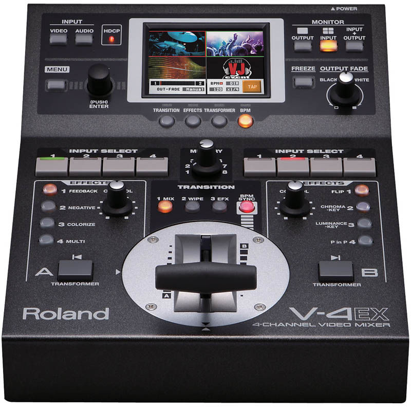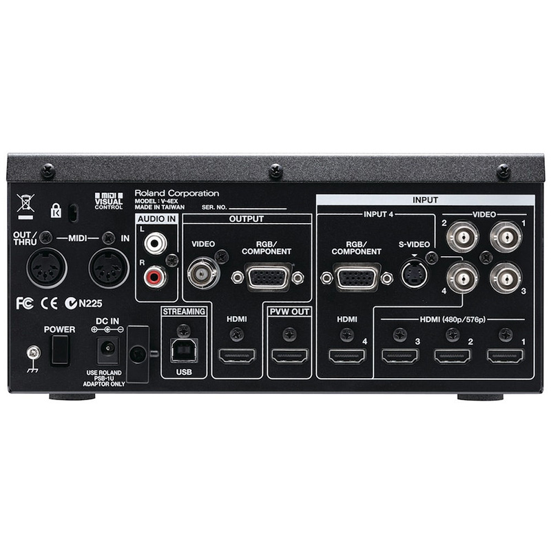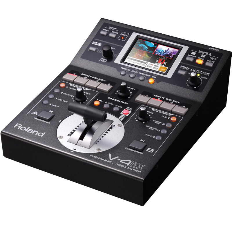Roland V-4EX video mikseta. Video mixer sa HDMI ulazima i izlazima. USB streamingom i ugrađenim multiviewerom sa kontrolom preko dodira ekrana. Jednostavnost i kvalitet slike i web streaming V-4EX je poboljšana verzija legendarnih V-4 i V-8 miksera. Poseduje i HDMI ulaze i izlaze, progressive internu obradu slike, audio embedding, USB streaming i touch monitor. Roland V-4EX unapređuje standard koji je postavio V-4 četvorokanalni video mikser u prvom redu time što poseduje HDMI ulaze i izlaze, USB streaming za web, HDCP funkcionalnost, touch multi-viewer, i audio embedding. Ove mogućnosti su dodate na ionako moćne osnove kao što su efekti i jedinstveni korisnički interfejs. Koji je od V-4 napravio jednog od najprodavanijih video miksera svih vremena. Univerzalnost Roland V-4EX i jedinstvene mogućnosti koje poseduje omogućuju mu primenu na raznim mestima, klubovima, koncertima, priredbama, sastancima, prezentacijama, venčanjima, obrazovanju i sportskim centrima, kao i sportskim događajima. V-4EX je kompaktan mikser i pogodan je za korišćenje na terenu, isto koliko i u studijskom okruženju.