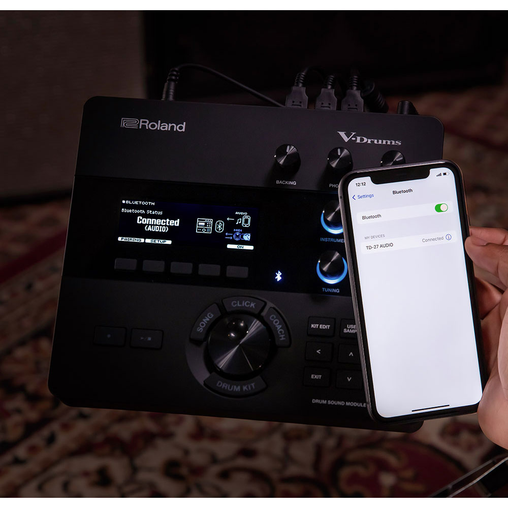 - Roland’s advanced digital sensor technology and dynamic TD-27 drum module provide the sound and response to match.