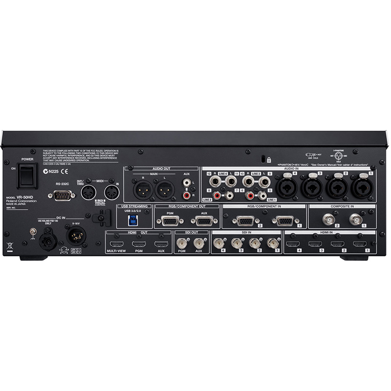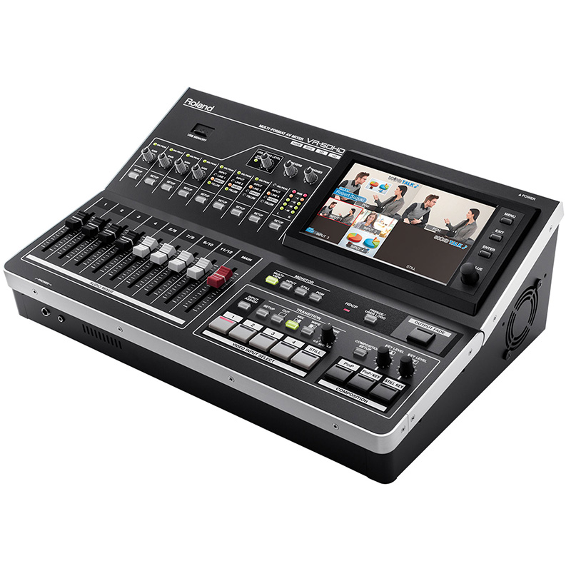 Roland VR-50 HD Audio Video mixer. Sve-u jednom uređaju - HD Multi-Format AV Mixer sa USB 3.0 interfejsom za Web Streaming i snimanje. Do sada je za studijski video visoke rezolucije i streaming bilo neophodno mnogo opreme i video i audio mikseta, konvertera za prilagođavanje ulaznih signala sa različitim rezolucijama, LCD monitora itd. Može primiti signal sa kamera, kompjutera, Blu-ray playera, DVD playera, mikrofona, iPad ili sličnih uređaja bez brige o tome da li je priključeni uređaj analogni ili digitalni i kakav mu je format izlaza. Osim HD-SDI i HDMI izlaza za HD snimanje ovaj uređaj poseduje i USB 3.0 i 2.0 izlaz. To omogućuje da se priključi na kompjuter i snima ili streamuje na web. Svi digitalni video izlazi imaju embedded audio. Nikad ne znate kakav materijal i na kojem uređaju će vam doneti na prezentaciju ili živi događaj. Notebook kompjuteri koje neko donese mogu imati razne konektore, od VGA do DVI, HDMI itd. Razlikuju im se i rezolucije, pa nije uvek moguće koristiti donesen materijal na licu mesta. Korišćenjem standardnih Blu-ray i DVD playera može uzrokovati probleme sa HDCP.