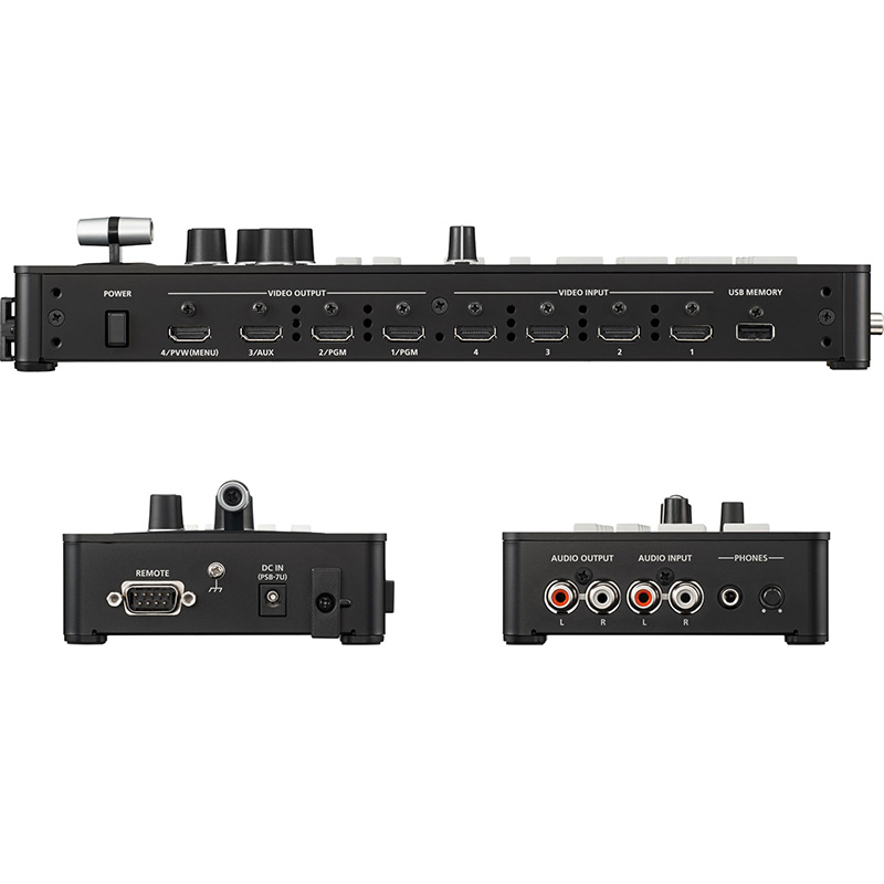 - Built-in eight-channel digital audio mixer handles audio from four HDMI signals and stereo analog input