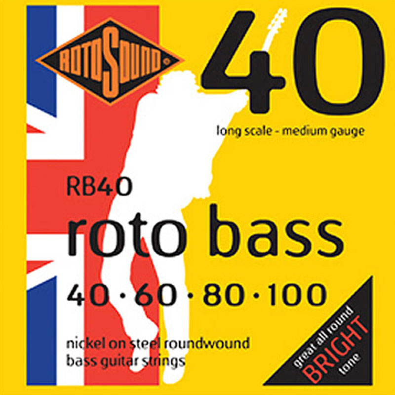 Rotosound RB40 Nikl 40-100 žice za bas gitaru (Nickel Roundwound), 40-100 (40, 60, 80, 100), nickel/steel kombinacija, svetlog tona. Čuveni Rotosound zvuk po pristupačnoj ceni.