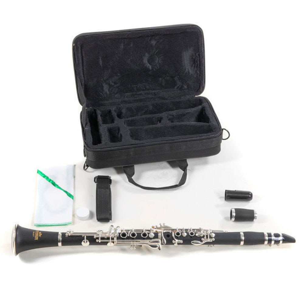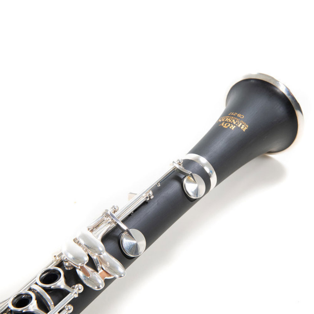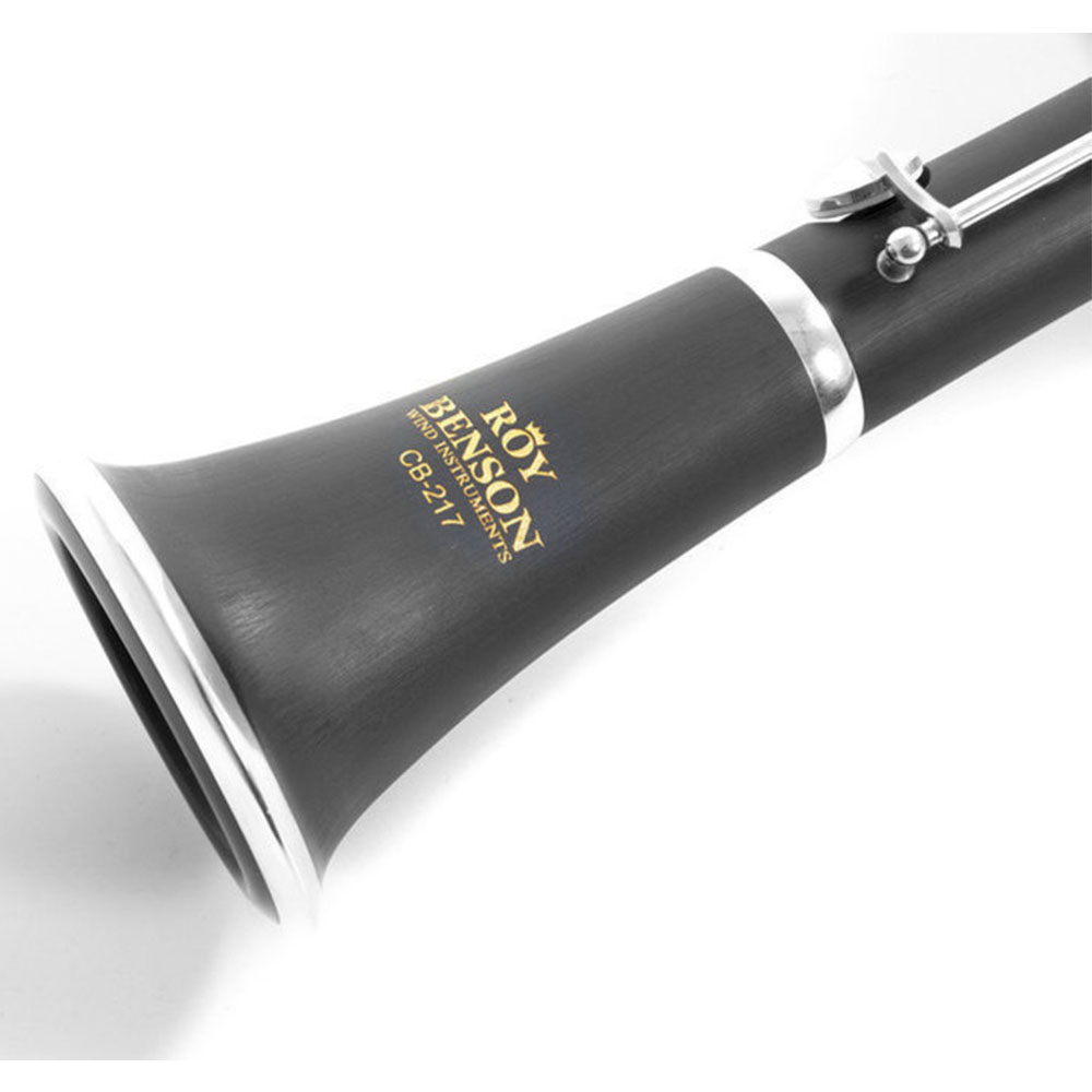 - Telo je izrađeno od tvrde gume. Klapne su posrebrene. Klarinet poseduje 17 klapni i 6 prstenova. Dolazi u kompletu sa usnikom, priborom za održavanje i koferom.Roy Benson CB-217 klarinet je zaokružena ponuda idealna za početnike, sa korektnim instrumentom, pratećom opremom i koferom.