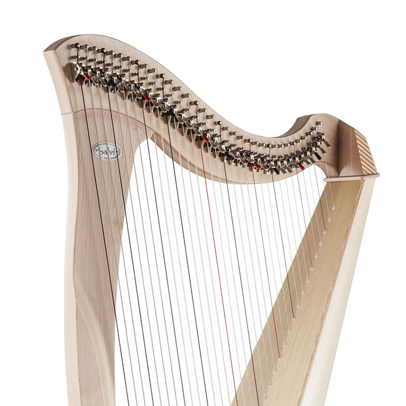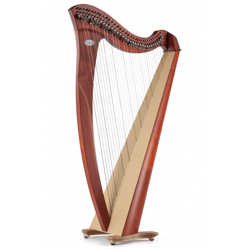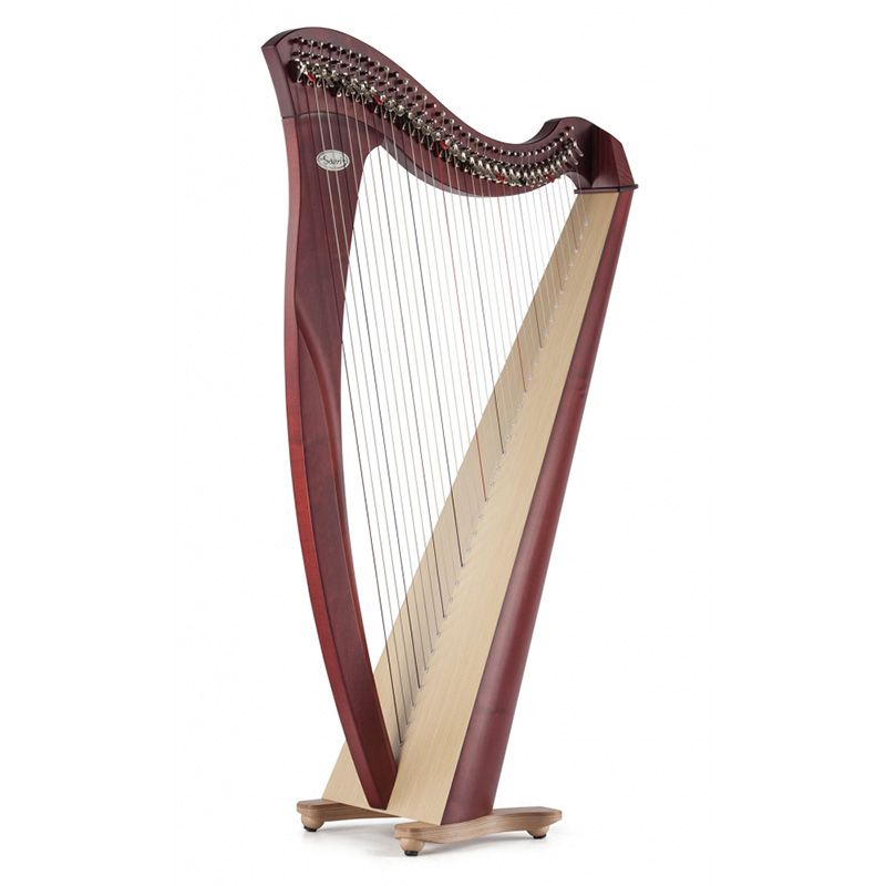 The 34 string Mia is an elegant, high quality instrument with a rich, clear sound that is built to be light and compact for ease of portability. It is a perfect harp for beginners of any age who need a reliable instrument for practice.