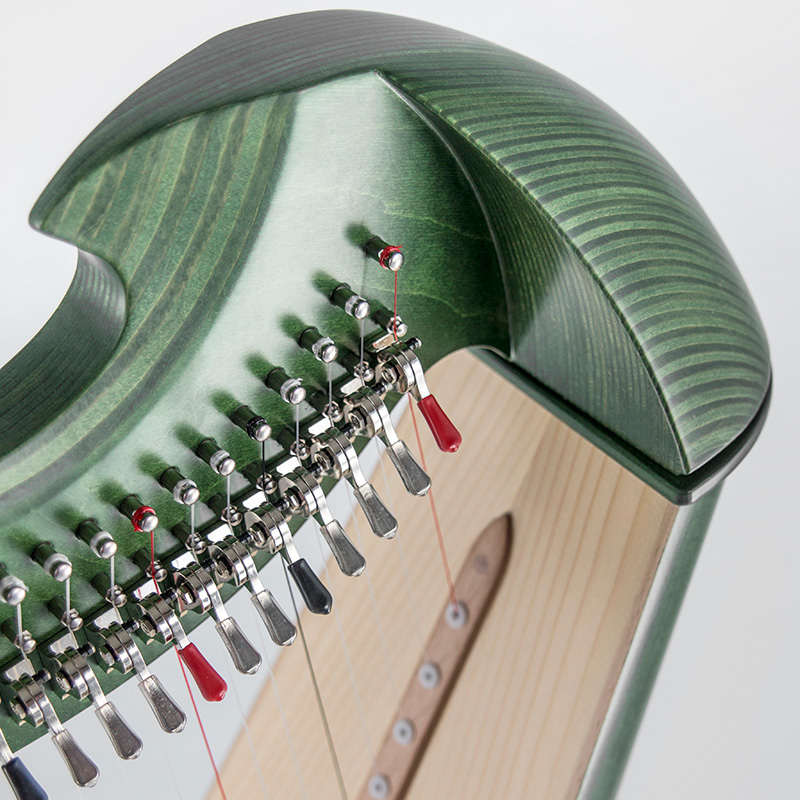 Lightweight and portable, the new 38-string Una features a sophisticated and captivating Celtic design. Its unique Silkgut® Copper strings containing copper powder from 4th octave B to 5th octave D remove any musical “jump” from wire to non-wire strings, and lend to the Una’s indulgence of rich tones and deep bass.