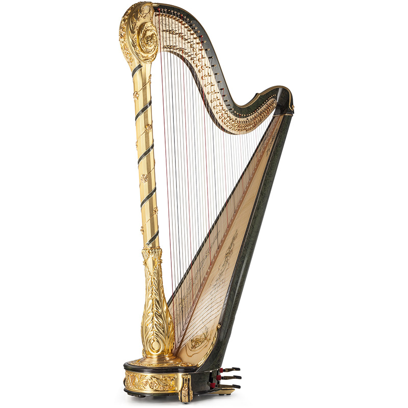 Gold, Canadian Hard Maple and skillful manufacturing make Victoria Gold an authentic work of art. Dedicated to its inspirer, Victor Salvi, every cell in this instrument represents a celebration of the very concept of the harp. With a great Rococo crown, the delicate floral decorations and motifs evoke nature in the classic style, Victoria is a single piece of unique beauty and gushing sound, also available in the Natural version.