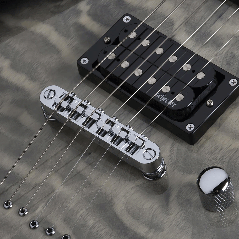 - Konjić od graphite-a i pouzdane Schecter čivije obezbeđuju uvek stabilan štim. Ugrađene Diamond Plus humbucker magnete odlikuje dosta visok output, ali se snalaze i u mekšim žanrovima. Schecter C-6 Plus je brz instrument, lagan za sviranje, i vrlo pouzdan u svim uslovima.