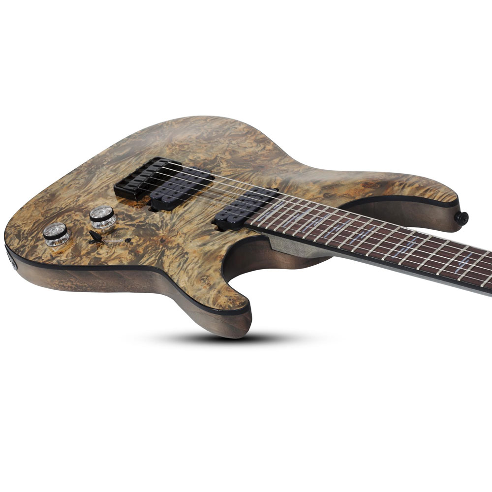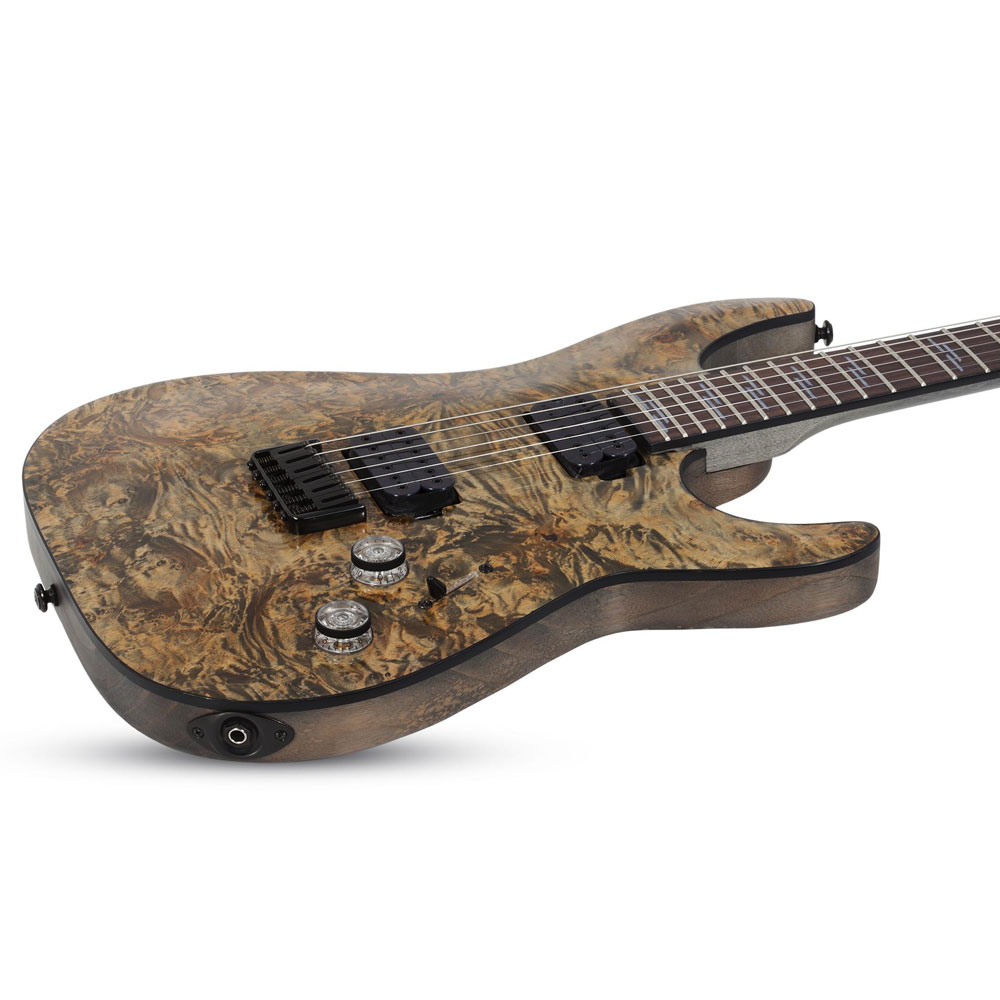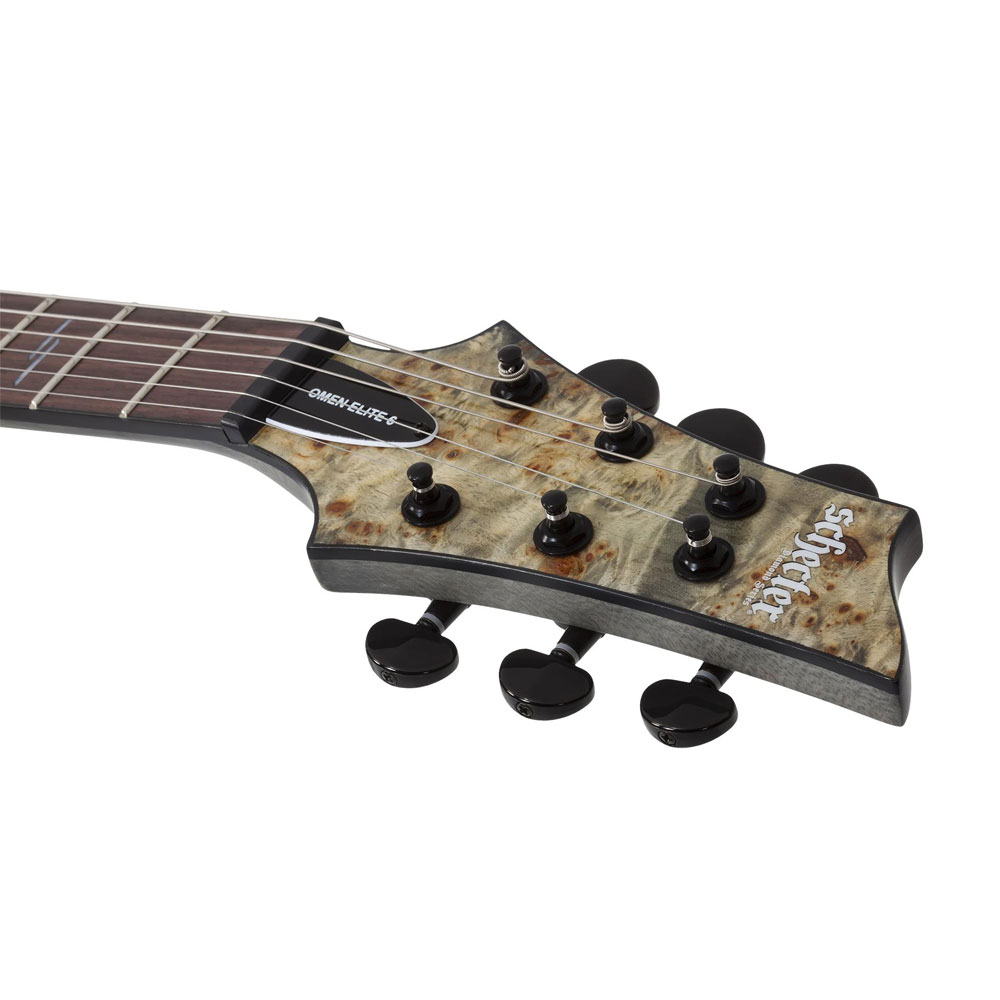 Schecter Omen Elite-6 CHAR 2451 električna gitara nudi sve što je proslavilo matičnu kuću u njenoj novijoj istoriji. Prepoznatljivi dizajn, moćnu elektroniku, čvrstu izradu, besprekornu svirljivost. Trup od mahagonija sa konturisanom gornjom površinom (burl top) omogućava veliki, grandiozan ton. Udoban vrat od javora, sa tankim C profilom, i atraktivnim perloid markerima.