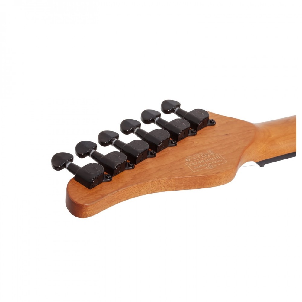 Schecter PT Standard Burl je vizuelno remek-delo, sa telom od mahagonija sa upečatljivim figuriranim gornjim delom. Ova kombinacija ne samo da pruža bogat, rezonantni ton, već daje gitari jedinstven i sofisticiran izgled koji se ističe na bilo kojoj sceni. Crni jednoslojni povez na telu i vratu dodaje dašak elegancije, dopunjujući agresivni dizajn gitare sa prefinjenim detaljima.