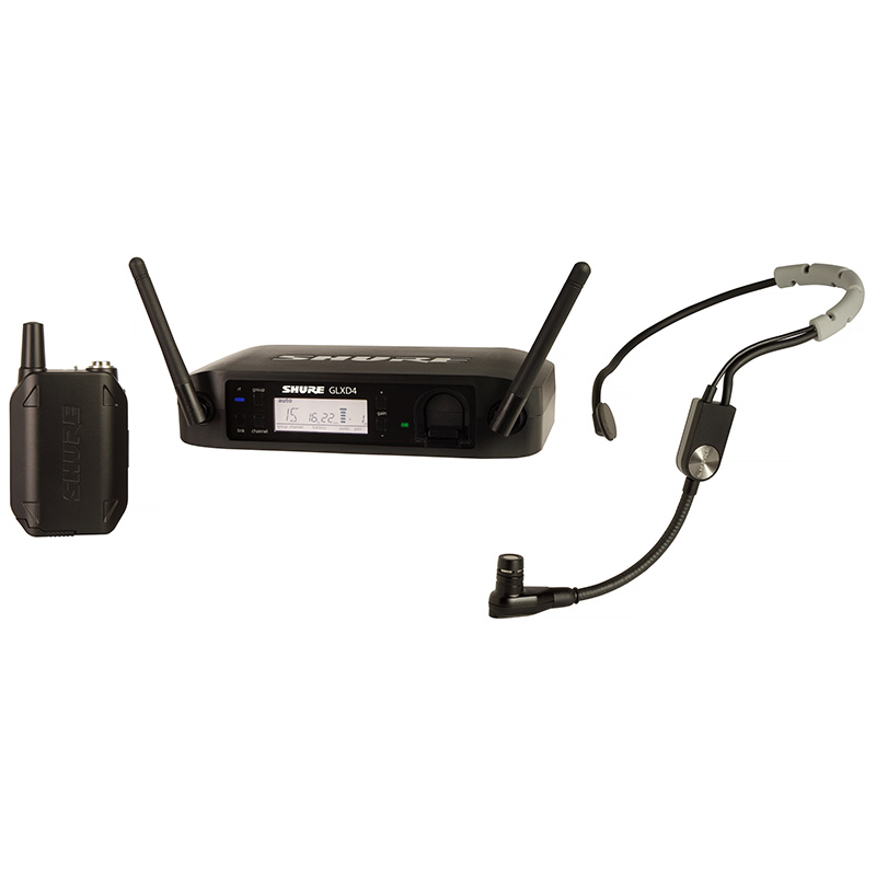 The GLXD14/SM35 Headworn Wireless System is part of the GLX-D wireless systems family. Revolutionary Shure GLX-D® Digital Wireless Systems combine leading-edge LINKFREQ Automatic Frequency Management technology with best-in-class intelligent lithium-ion battery rechargeability to define the new standard for seamless operation and digital audio clarity.