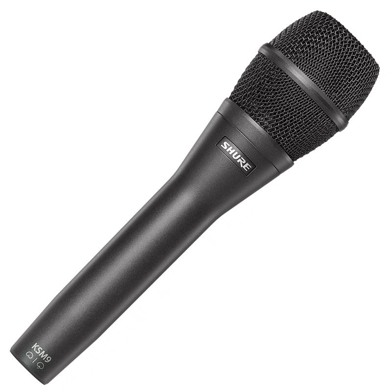 Engineered to exacting standards, the KSM9 reveals nuance and subtlety in a microphone optimized for the most demanding live environments. With its dual diaphragm design and switchable polar patterns (supercardioid/cardioid), the KSM9 is the choice for the world's most accomplished vocal performances.