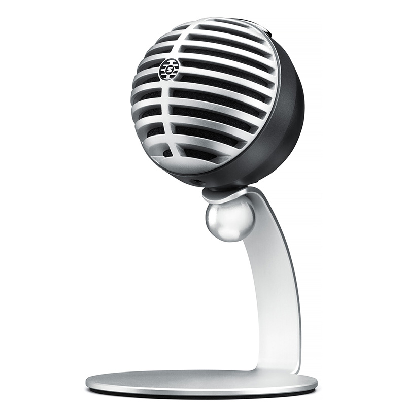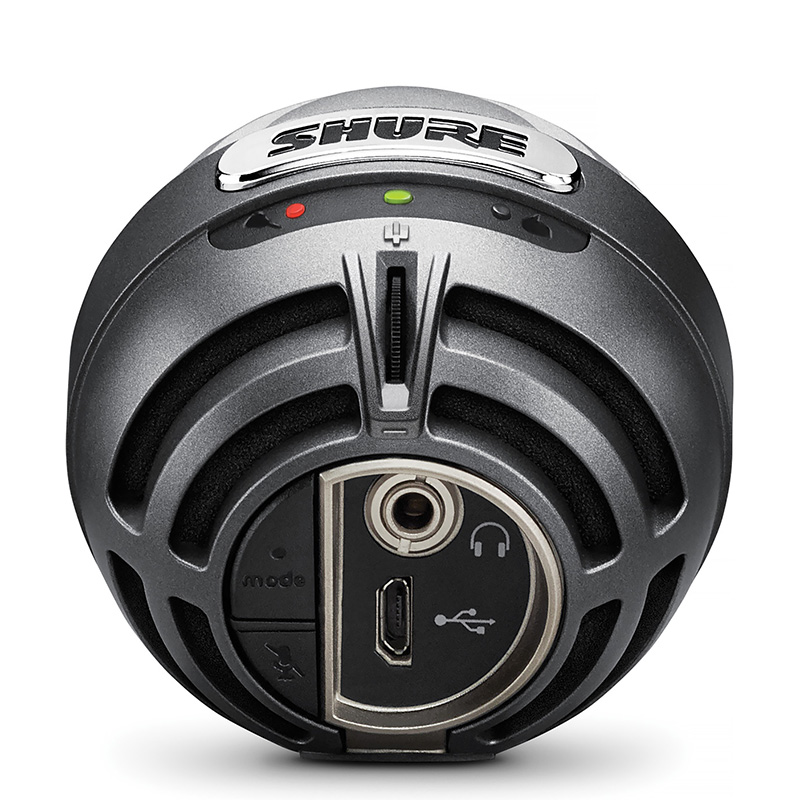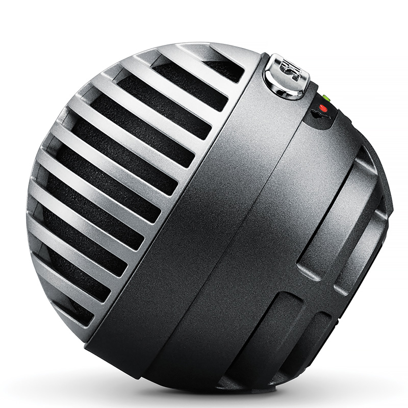Digital condenser microphone records high-quality audio and is supported by the ShurePlus MOTIV app to enable mixing on iOS platforms. Includes headphone output for audio monitoring, 3 DSP presets to tweak gain, EQ, compression, and a desktop stand. The MV5 offers professional-quality audio, with the flexibility and control of switchable DSP recording presets and latency-free headphone monitoring.