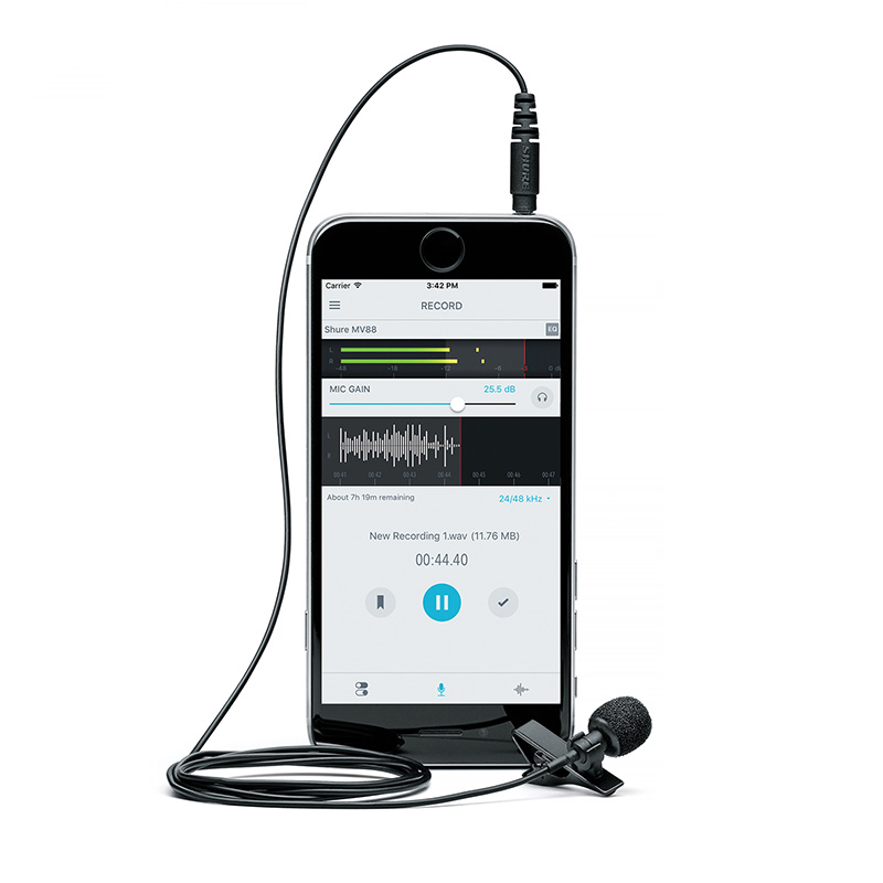 Simply clip the MVL Omnidirectional Lavalier Microphone to your collar or lapel and plug it into your mobile device to capture clear, quality audio for interviews, lectures, public speaking, and videography. With the free ShurePlus™ MOTIV™ iOS app, you can edit your recordings and share your sound files via text, email and other file sharing services. Omnidirectional condenser microphone connects to portable devices for interviews, videography, and more with superior acoustic clarity. Features include RF interference protection, high signal to noise ratio, high SPL, and windscreen.