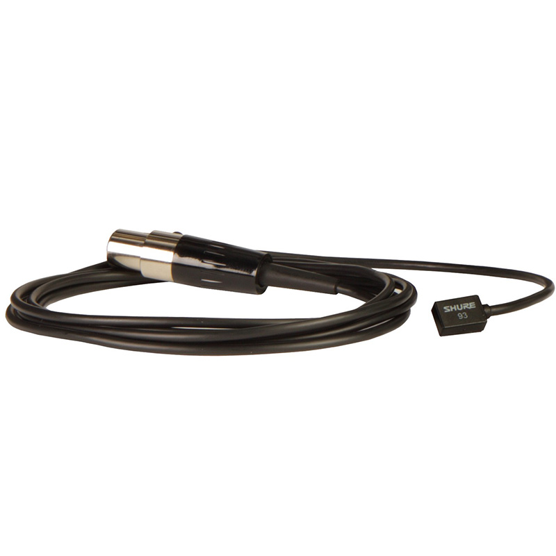 Model WL93 Microphones are economical omnidirectional, subminiature, lavalier, condenser microphones designed for general speech applications where a visually unobtrusive microphone is desirable. All WL93 models are supplied with a mounting block with attached tie bar, a sew-on mounting bracket, and an acoustic windscreen to minimize wind noise in outdoor applications. All WL93 models include a cable terminated with a 4-pin mini connector which connects directly to a Shure wireless body-pack transmitter.