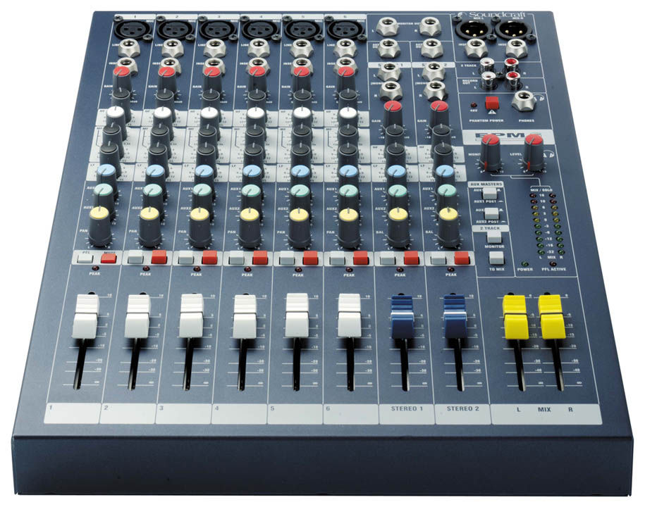 Soundcraft EPM6 mikseta ima 6 mono ulaza, 2 stereo kanala. Soundcraft EPM6 mikseta na prvi pogled - poseduje kvalitetne audio performanse sa vrhunskim pretpojačalom. Engleska proizvodnja, godine tradicije i iskustva u izradi mikseta svih namena.Quality audio performance with premium preamps. The emphasis with the Soundcraft EPM Series is very firmly on quality audio performance, with an easy-to-understand control surface uncluttered by unnecessary features. The EPM6 features Soundcraft's premium GB30 mic preamp (as used on the large-format LX7ii and GB Series desks) to provide high headroom and