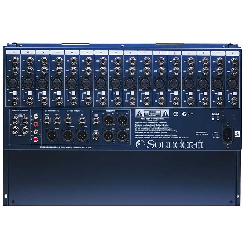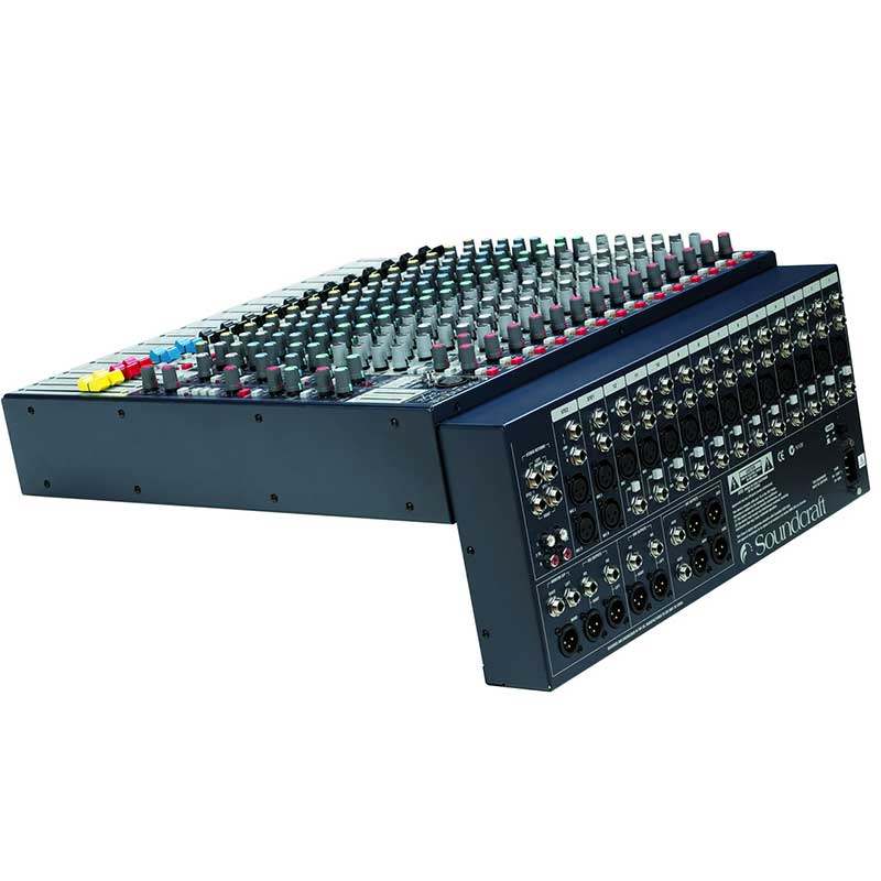 For ease of installation, the connector section is contained in a rotatable pod, allowing cable access from the top of the mixer if sat on a table-top, or from the rear when mounted in a 19” rack. On the stereo inputs on the 12.2 model, connectors are provided for both Mic and Line inputs. With Mic signals routed to the local channel, the Line inputs are available as stereo returns to the main mix bus. Two stereo returns and a 2-track (for example CD replay) input are provided, which means that the GB2R-12.2 model can offer up to 26 inputs to mix in a mixer just 19” (485mm) wide. Every input has a pre/post switchable direct output for recording or effects sends, while an internal universal voltage PSU avoids external power supply connections. The whole GB Series carries the high quality hallmark with which Soundcraft is synonymous, with engineering and design as you’d expect from this high-end manufacturer. Careful attention has been given to the mechanical construction, to ensure reliability and ruggedness under strenuous conditions, with all input modules being constructed with individual vertically-mounted pcb’s, fitted to the steel chassis front panel with individually-nutted potentiometers.