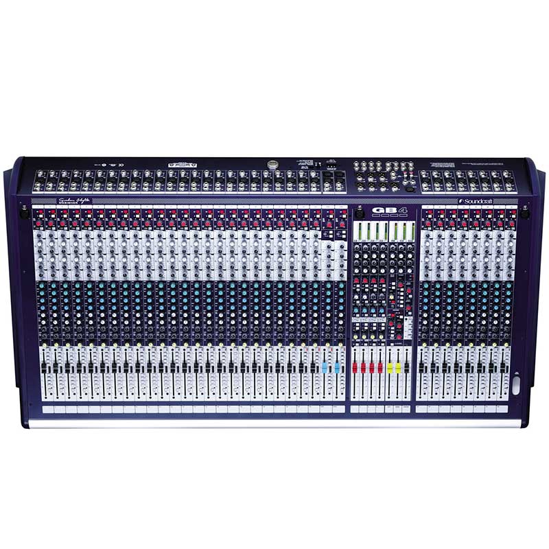 Featuring the GB30 Mic preamps and EQ, the GB4 is designed by Graham Blyth for the company’s 30th anniversary. The desks carry the high quality hallmark with which Soundcraft is synonymous, with engineering and design as you'd expect from this high-end manufacturer. Careful attention has been given to the mechanical construction, to ensure reliability under strenuous conditions, with all input modules being constructed with individual vertically-mounted pcb’s, fitted to the steel chassis front panel with individually-nutted potentiometers. The GB Series also shares the stylish looks of the MH4, MH3 and LX7ii consoles, continuing a strong family look and feel across the range. Available in frame sizes from 16 to 40 channels, the GB4 is designed for installations such as churches and performance venues, or for small touring sound systems. The dual-mode topology implemented to such success on the MH3 and MH4 desks allows the GB4 to be used on FOH or monitor duties, with fader control of group or aux outputs. Although largely conventional in layout, the GB4 does have some unique mechanical features. The rugged steel chassis has a sloping rear connector panel so that it is easier to configure from the front of the desk, while the integral power supply has a link option for an external back-up PSU. Four mute groups allow several channels to be muted simultaneously, while another unique facility is the limiter on a set of dedicated record outputs that makes it easier to create a stereo recording of the mix. The console also features an output matrix with seven feeds to four outputs, being fed from the group busses and main L, R and C (mono) outputs. The GB4 offers a comprehensive set of functions and facilities in a small and cost-effective footprint, and delivers the high performance and reliability you would expect from a Soundcraft product.
