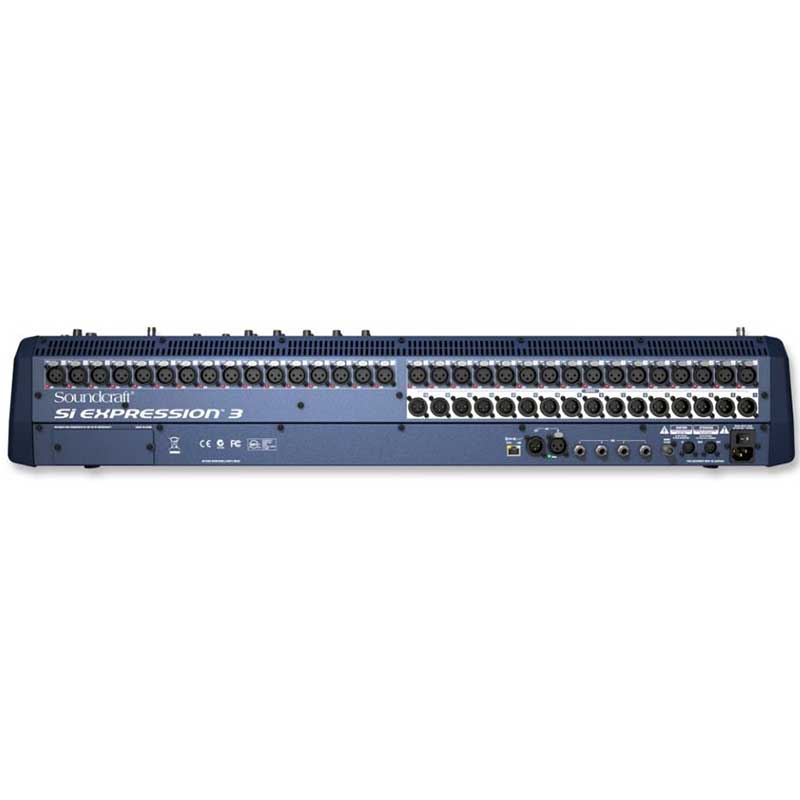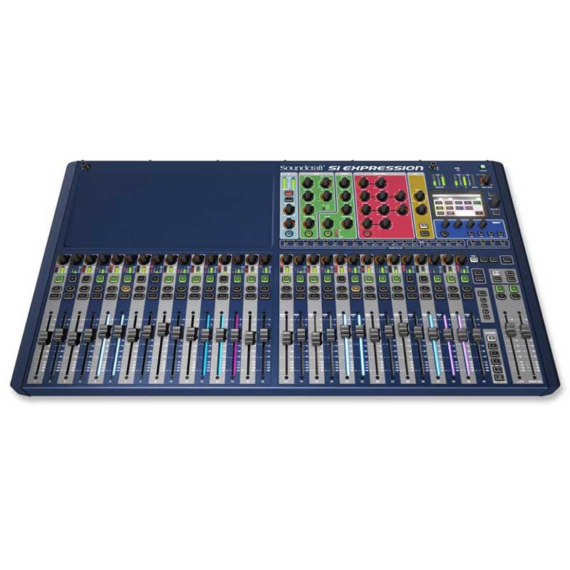 Drawing on more than a decade of experience in the field of digital audio mixing, the Soundcraft® Si Expression exploits some of the newest DSP, component technology and manufacturing techniques to deliver our most powerful cost effective digital console ever! Each console in the range is identical in its feature set so your only choice is how many faders and local mic amps you want. With a range covering the super portable 19" rack mount Expression 1 to the mighty Si Expression 3 with its 30+2 faders and 32 mic/line inputs there is a model to meet all needs. The Si Expression 3 features 32 recallable mic pre amps (16 on Si Expression 1 and 24 on Si Expression 2) plus 4 line inputs, 4 internal stereo FX returns, AES in, and a 64x64 expansion slot offering more than enough scope to use every one of the 66 input processing channels. Every input processing channel has dedicated processing for high pass filter, input delay, gate, compressor and four band EQ whilst keeping it under control is a comprehensive automation system augmented with four mute groups and FaderGlow™ to light the way so you are never lost. All Si Expression consoles have busses, output processing and connectivity to match the versatility of the inputs; the 14 aux/group mixes can be configured as 14 mono mixes, 8 mono plus 6 stereo mixes or almost anything in between, whilst the 4 matrix mixes can be mono or stereo as needed. The bus and matrix mixes are complemented with four more mix busses dedicated to the internal Lexicon FX processors all in addition to the left, right and centre busses. Each bus mix features a compressor, 4 band EQ, BSS graphic EQ and delay always available all of the time. Output connectivity is comprehensive with all models featuring 16 balanced line outputs, headphone monitor out, AES out and of course the 64x64 option slot.