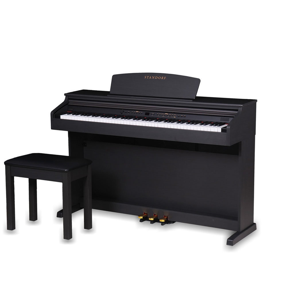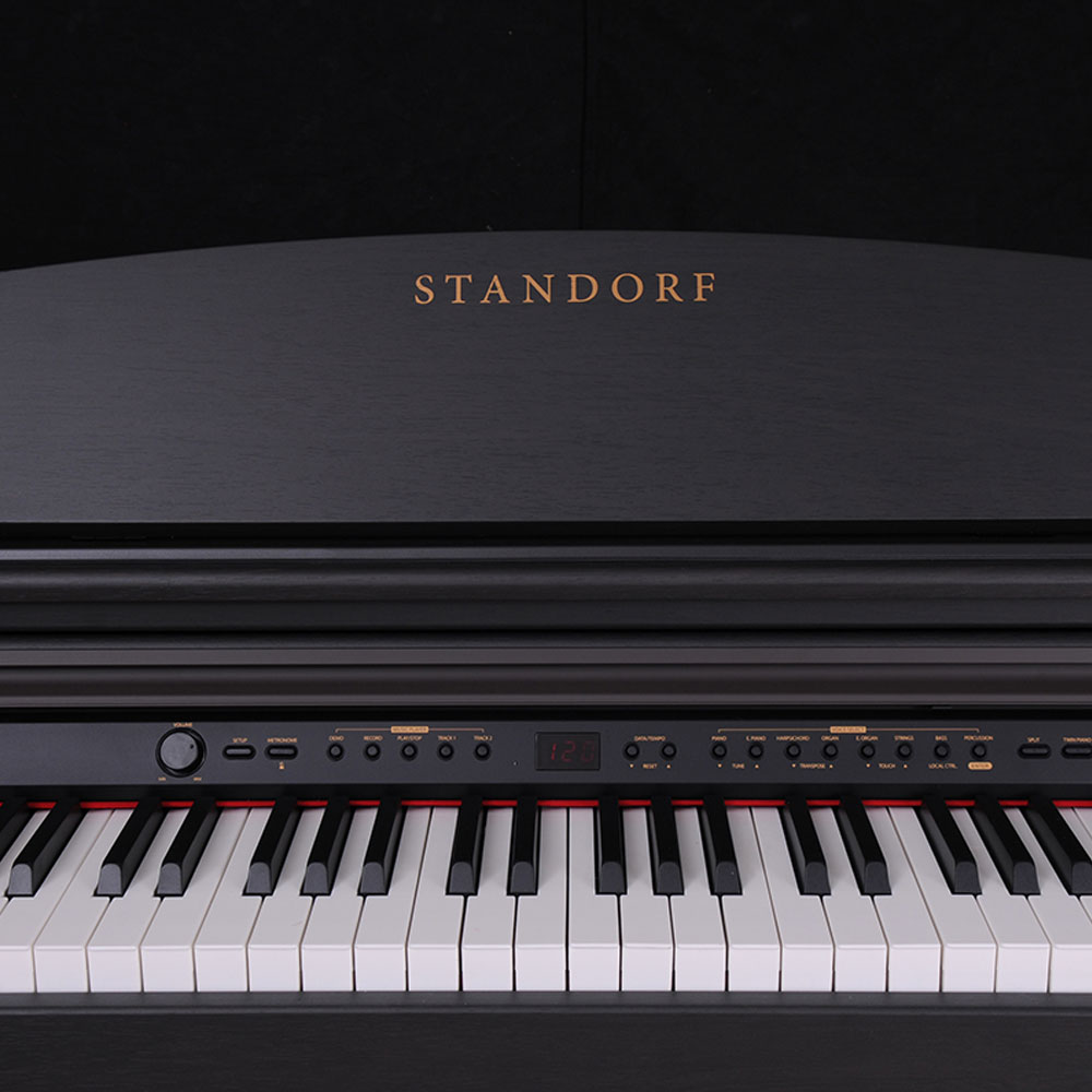 - Ovaj digitalni klavir je moderan muzički instrument koji koristi najnovija saznanja iz sveta tehnologije. Standorf ETUDE RW električni klavir dolazi sa 16 različitih zvukova, punim klavirskim otežanim dirkama osetljivim na dodir, širokim i elegantnim stalkom za note. Takođe sadrži sistem sa 3 piano pedale, u kvalitetnom drvenom kućištu i mnogo korisnih funkcija. Pored brojnih mogućnosti koje se obično nalaze na digitalnim klavirima, Standorf Etude sadrži različite resurse koji se mogu koristiti za učenje muzičkog koncepta i veštine sviranja pijanina. Te funkcije su Twin Piano, Split, Layer i 3-pedal sistem i 2-track snimanje, što će posebno razveseliti kompozitore i one koji žele snimati svoje vežbanje.