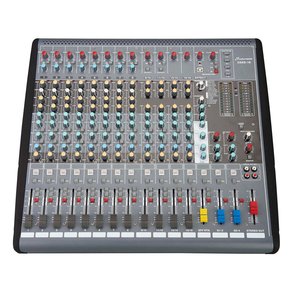 Studiomaster C6XS-16 mikseta zbog svoje male težine je pogodna za prenošenje i upotrebu u kućnim i studijskim uslovima. Mogućnost povezivanja na 6 ili 10 mic inputa sa ugrađenim kompresorom na svakom kanalu.