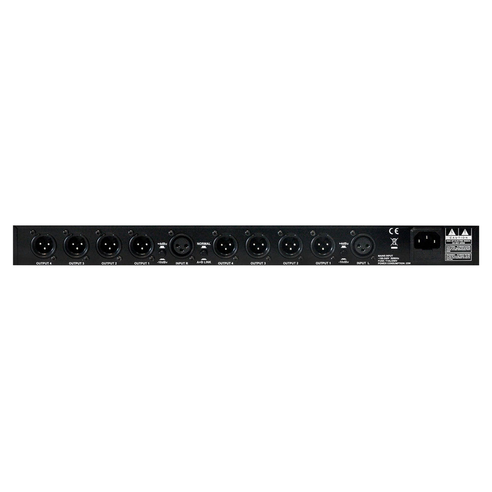 - Mikseta poseduje 2 ulaza i 4 izlaza. Svaki kanal poseduje level kontrolu, bargraph u 6 segmenata i mute switch. Dostupna su dva moda, stereo input i 4 outputa ill mono input i 8 outputa.