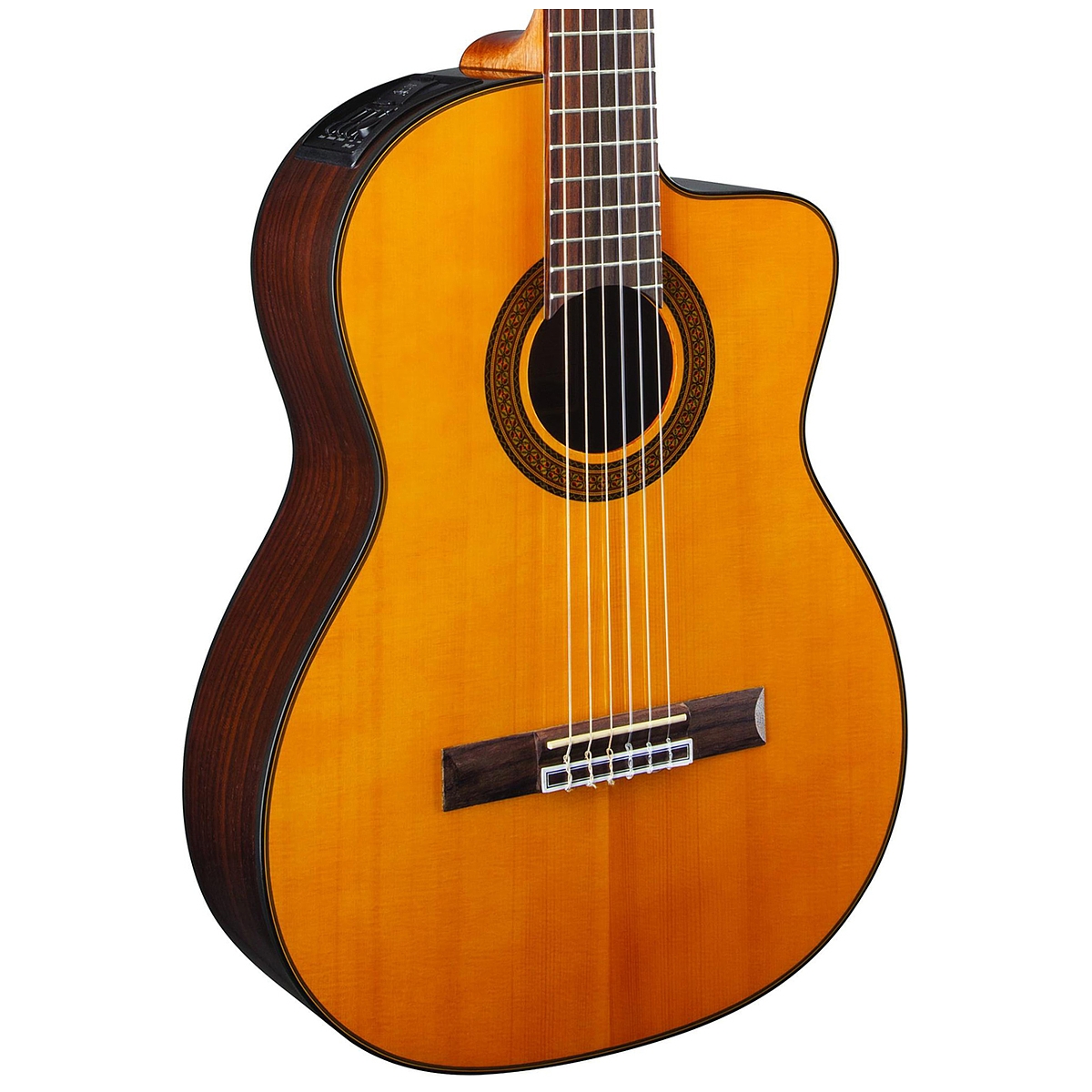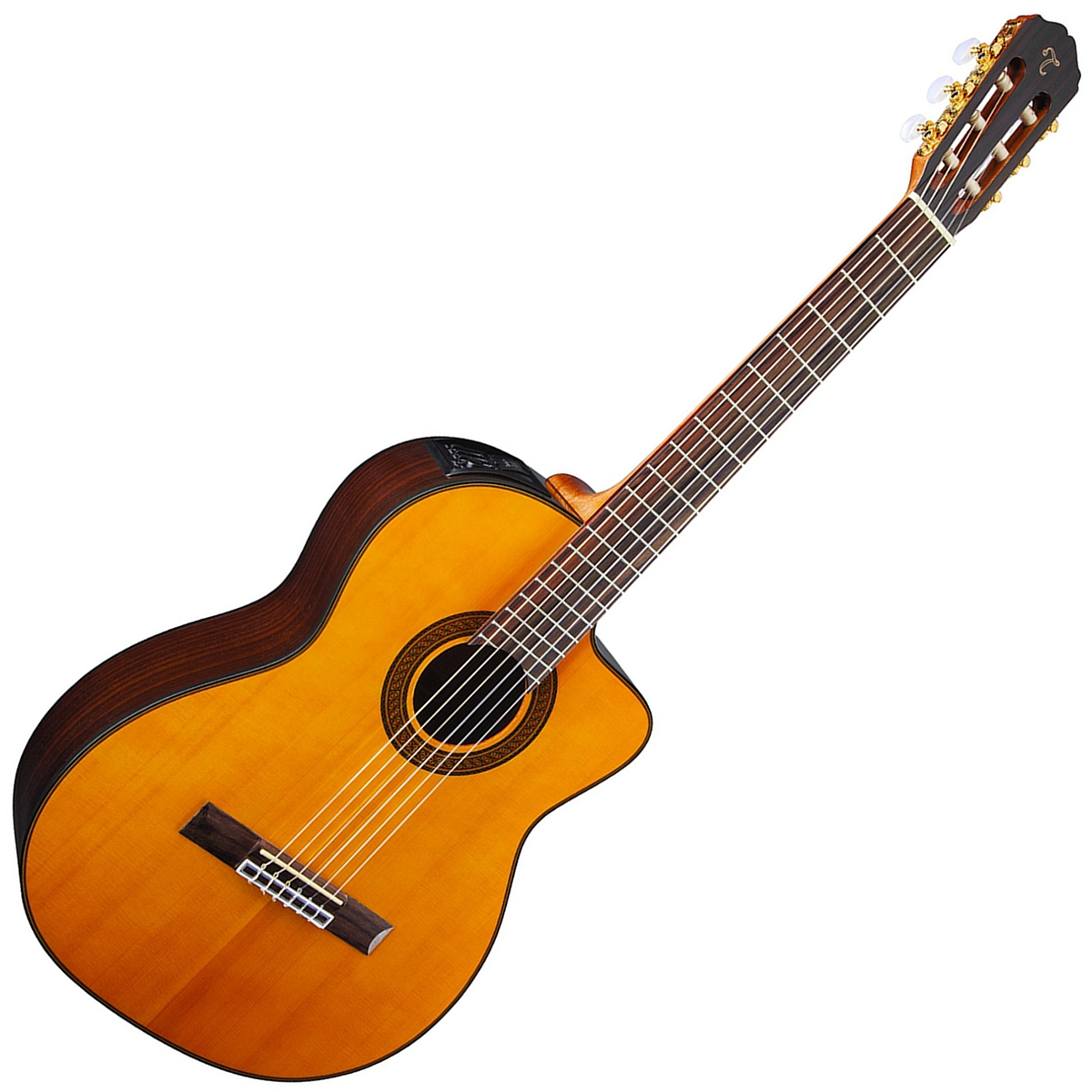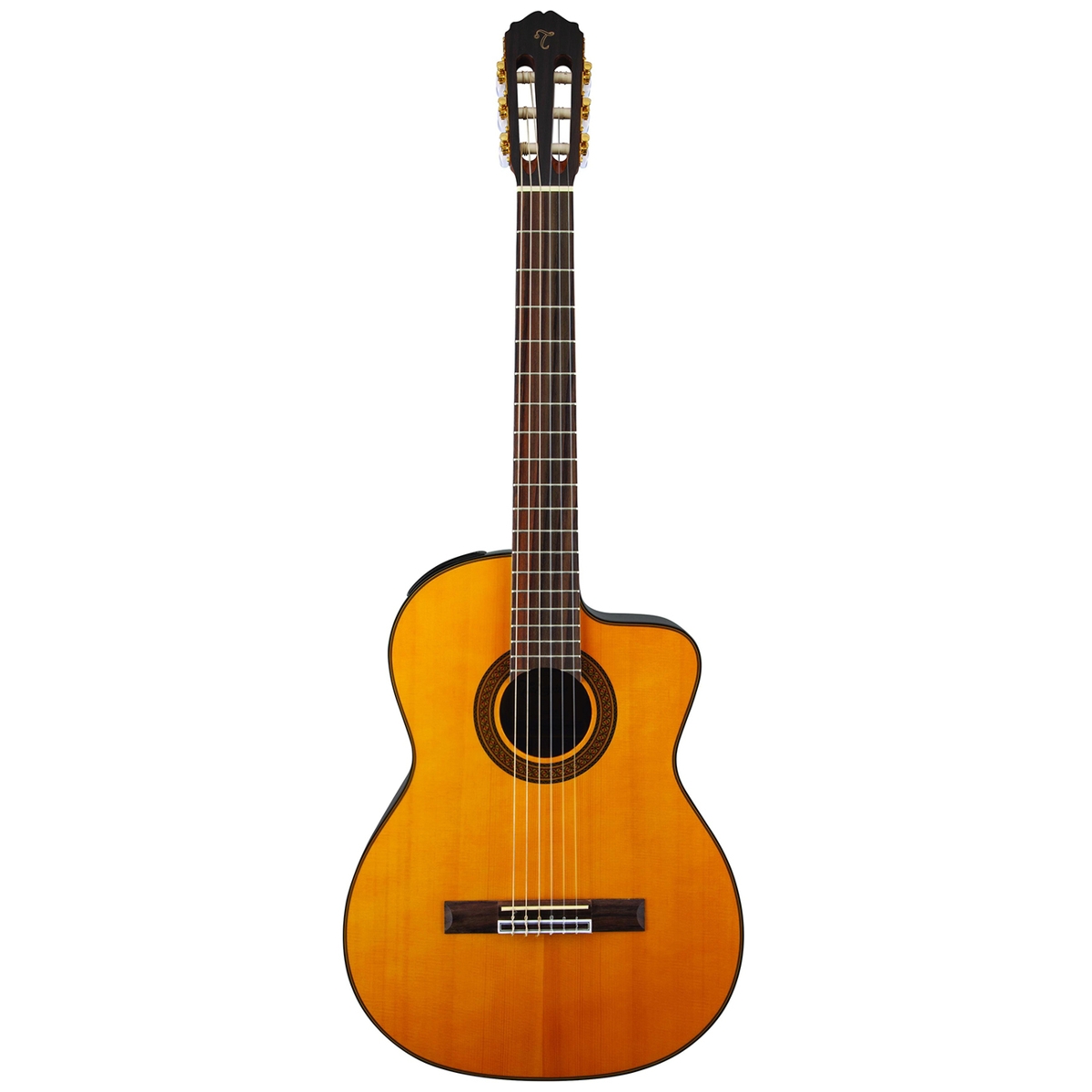 Takamine GC5CE-NAT klasična gitara spada u najdugovečnije modele ove kompanije. Vrhunski koncipiran i izrađen instrument, vrlo pogodan za profesionalnu upotrebu. Puna gornja ploča od smreke i stranice i leđa od crnog oraha omogućavaju nosiv, rasan ton. Baršunasti basovi i jasni visoki, uz maksimalnu glasnoću za ovaj tip korpusa. Pažljiv odabir drveta i masivna izrada nude dugoročnu pouzdanost i kvalitet na duge staze. Konjić i sedlo od sintetičke kosti dodatno doprinose zvuku i premium osećaju. TP-4T ozvuka zadovoljava sve potrebe studija ili živih nastupa, uz integrisan štimer i tropojasni EQ. Takamine gitare već decenijama predstavljaju odličnu kupovinu, a Takamine GC5CE-NAT je klasičan primer vrhunskog instrumenta po prihvatljivoj ceni. U prefinjenom high gloss natural finišu.