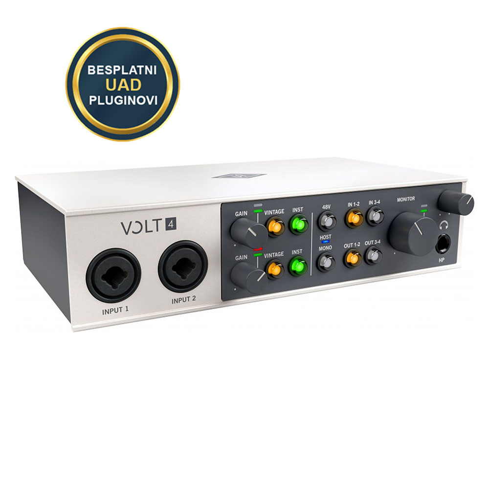 - Universal Audio stvorio je Volt 4 za sve saradnike, od muzičara , producenata do kreatora sadržaja koji žele lako snimiti zvuk sa vrhunskim studijskim kvalitetom. Priključite se direktno na Mac, PC, iPad ili iPhone. Snimajte sa najboljim kvalitetom zvuka u klasi.
