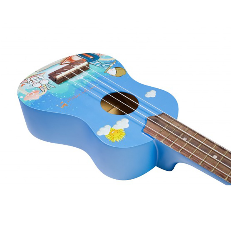 Sopran ukulele u raznim bojama. Prednja ploca uradjena je od laminatirane lipe, kao i zadnje i bocne stranice. Fingerboard je od javora. Idealan za početnike i hobiste. Pogodan kao ulaz u svet muzike za malu decu.