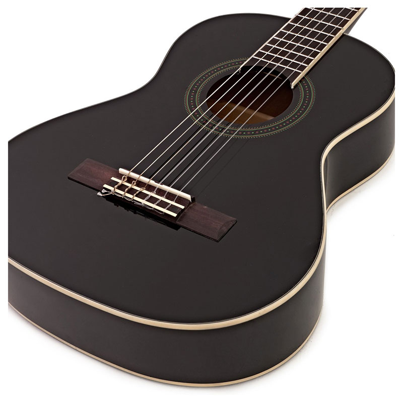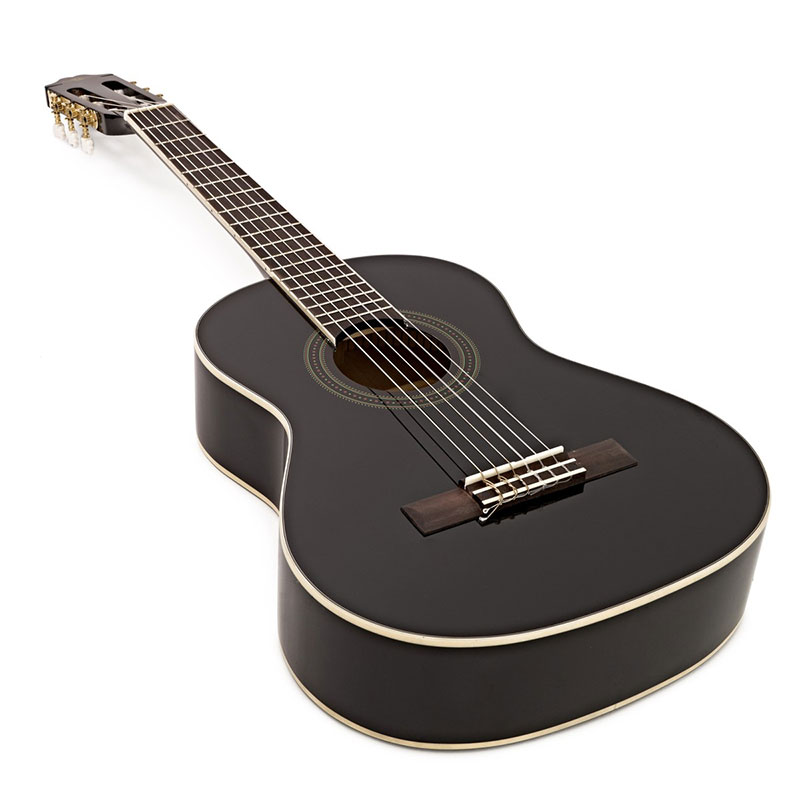 Gewa Basic 3/4 Black PS510.346 klasična gitara je gitara 3/4 je odličan izbor za mlađe početnike od 9 do 12 godina. Telo od lipe, ABS bordura, Pakka fretboard i kobilica, hromirane čivije. Dužina skale 590 mm, širine nuta od 47 mm. Izuzetno svirljiv instrument po neverovatnoj ceni. Crne boje, u mat finišu.