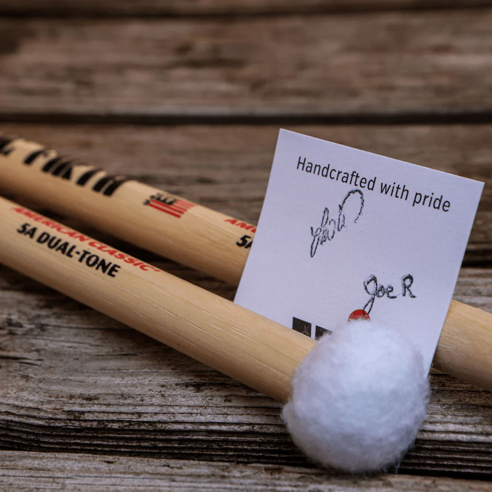 Vic Firth American Classic 5A Dual Tone palice za bubnjeve su standardne 5A palice sa sintetičkim batom od filca na donjem delu palice.